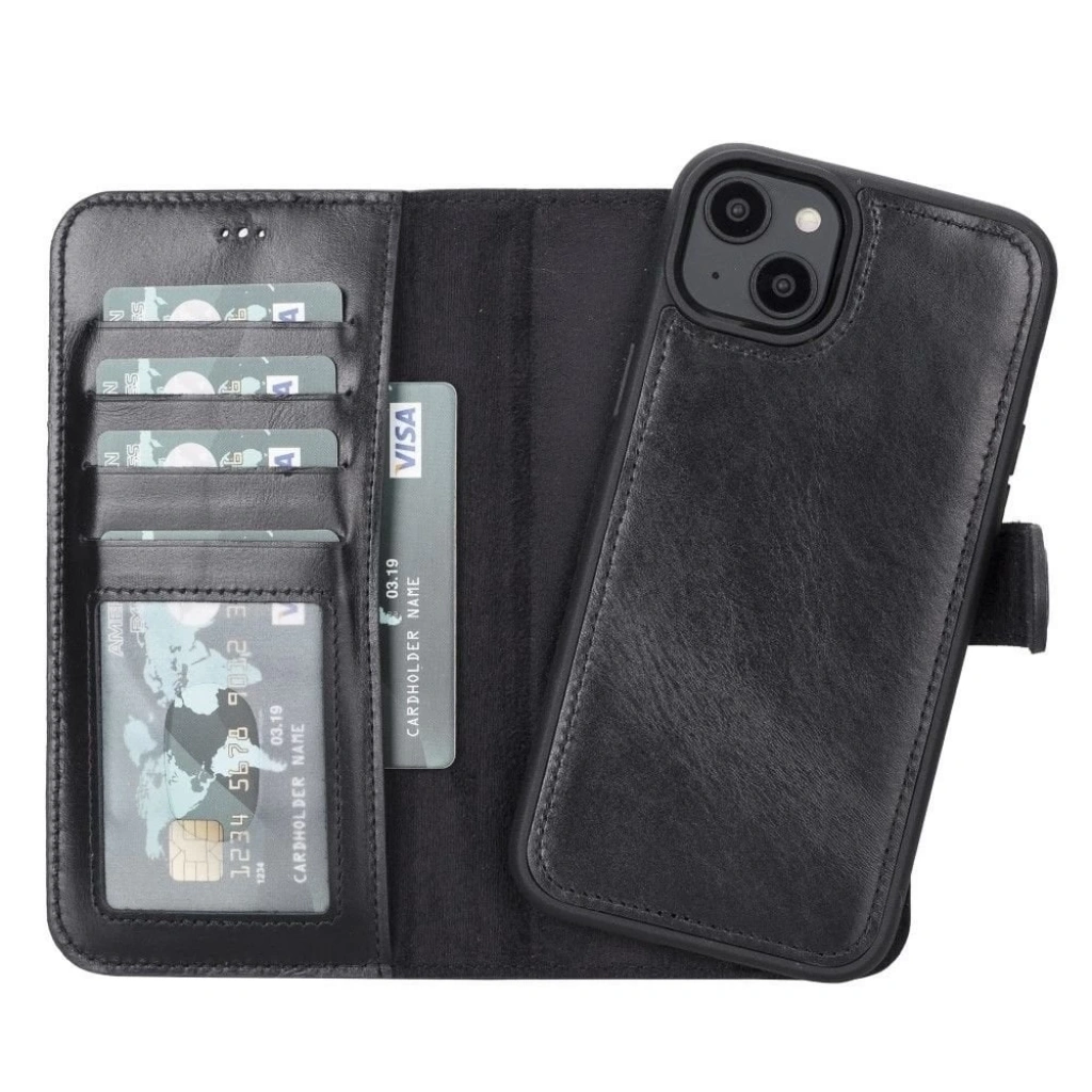 Apple iPhone 14 Plus Uyumlu Deri Cüzdanlı Kılıf MWWN RST1 Siyah