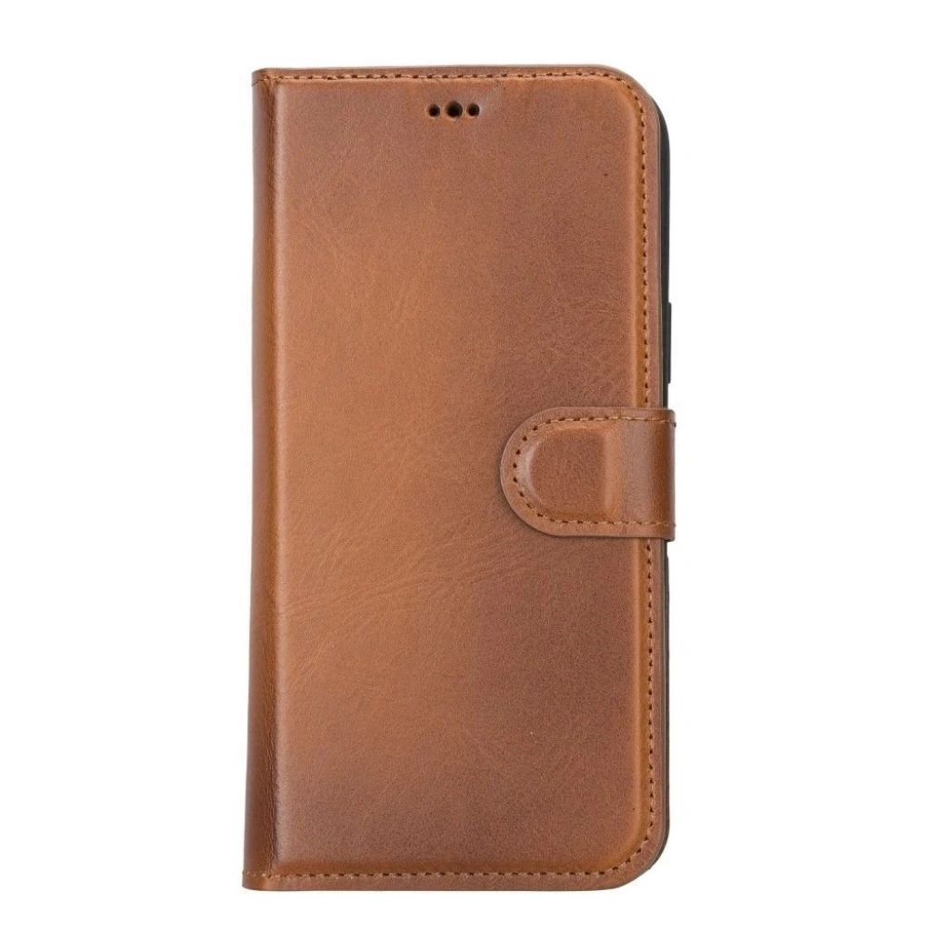 Apple iPhone 16 uyumlu, Hakiki Deri, El Yapımı, Cüzdanlı Kılıf, Karamel