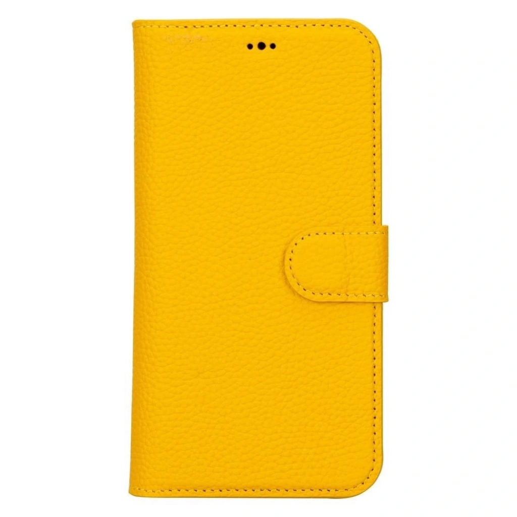 Apple iPhone 15 Plus Uyumlu Deri Cüzdanlı Kılıf MWWN FL12 Sarı