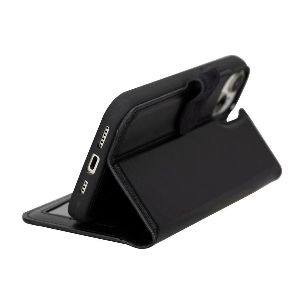 Apple iPhone 15 Pro Max Uyumlu Deri Cüzdanlı Kılıf MWWN RST1 Siyah