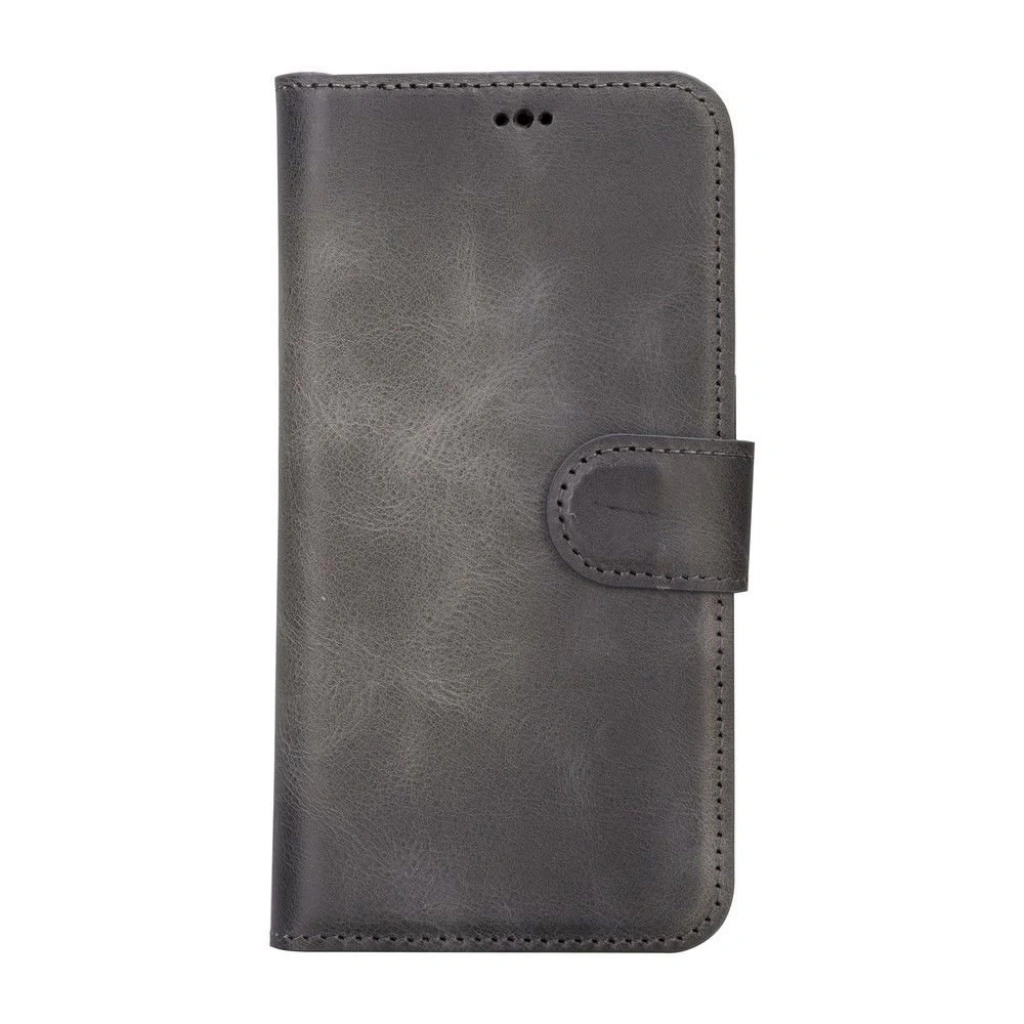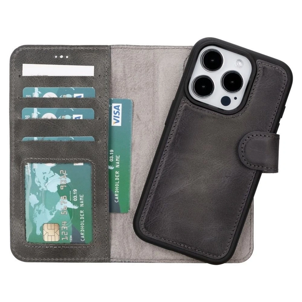 Apple iPhone 15 Pro Uyumlu Deri Cüzdanlı Kılıf MWWN VS4EF Gri