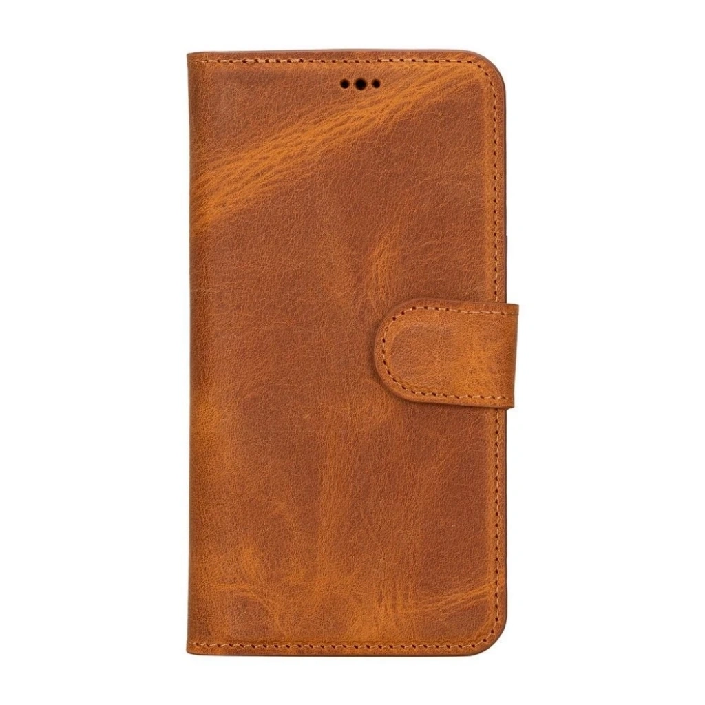 Apple iPhone 16 uyumlu, Hakiki Deri, El Yapımı, Cüzdanlı Kılıf, Karamel