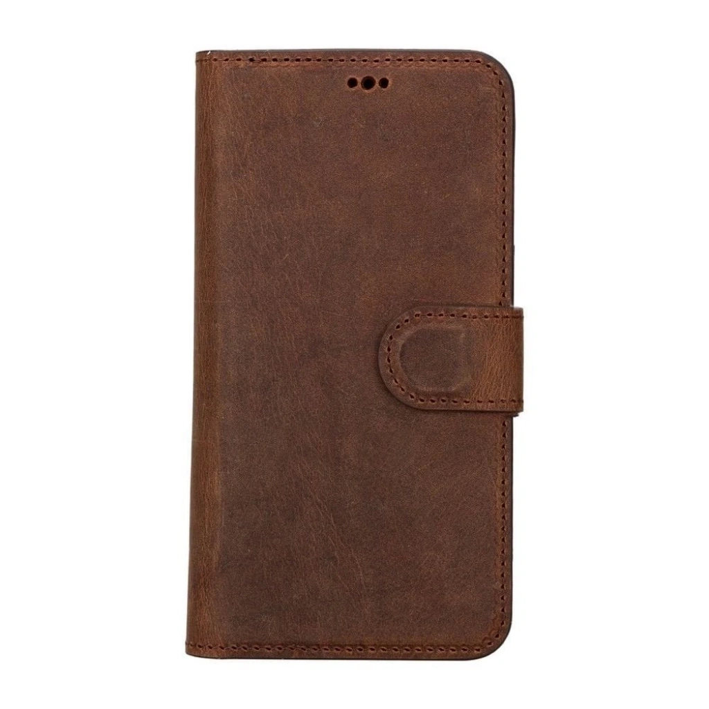 Apple iPhone 16 uyumlu, Hakiki Deri, El Yapımı, Cüzdanlı Kılıf, Karamel