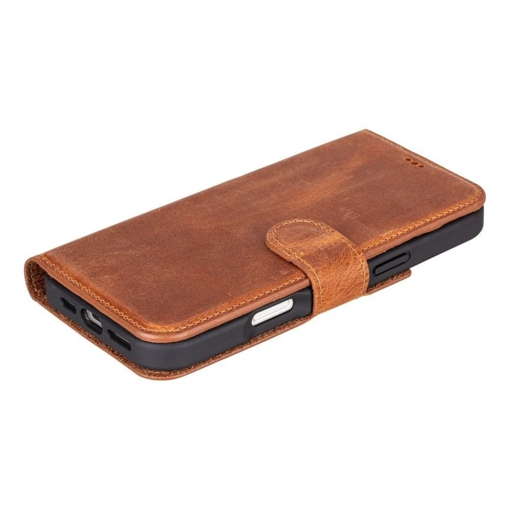 Apple iPhone 16 Pro Max uyumlu, Hakiki Deri, El Yapımı, Cüzdanlı Kılıf, Karamel