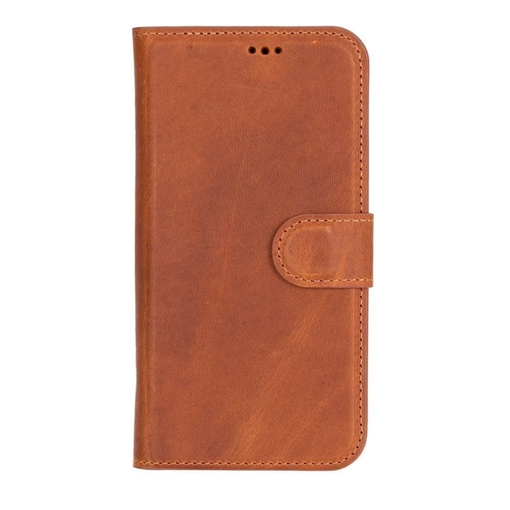 Apple iPhone 16 uyumlu, Hakiki Deri, El Yapımı, Cüzdanlı Kılıf, Karamel