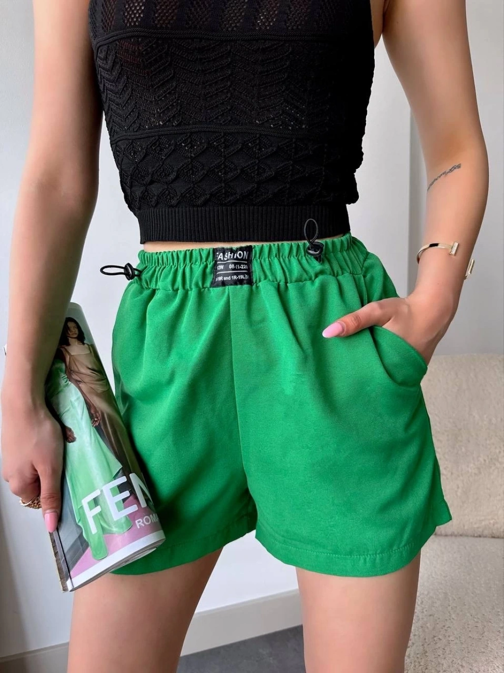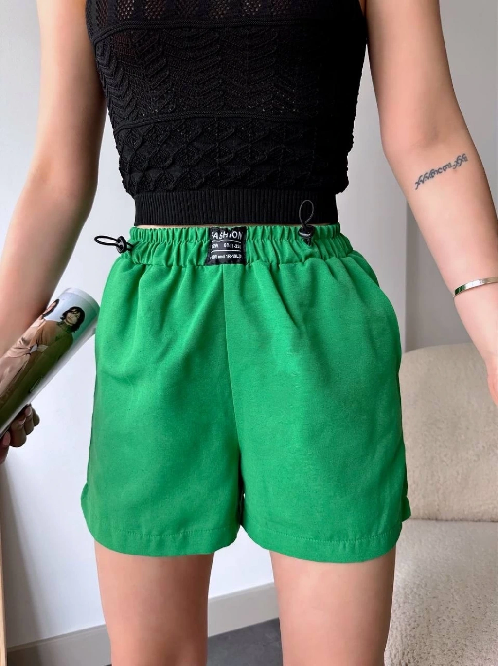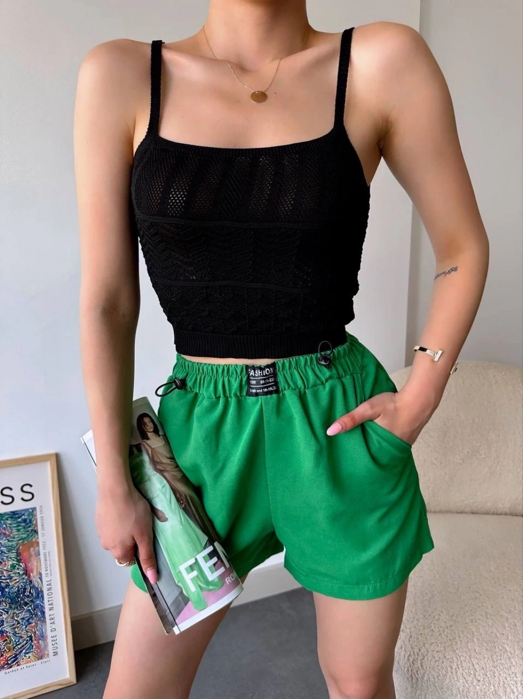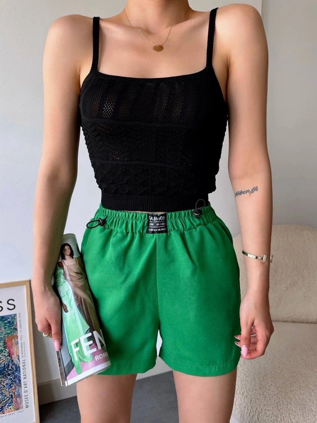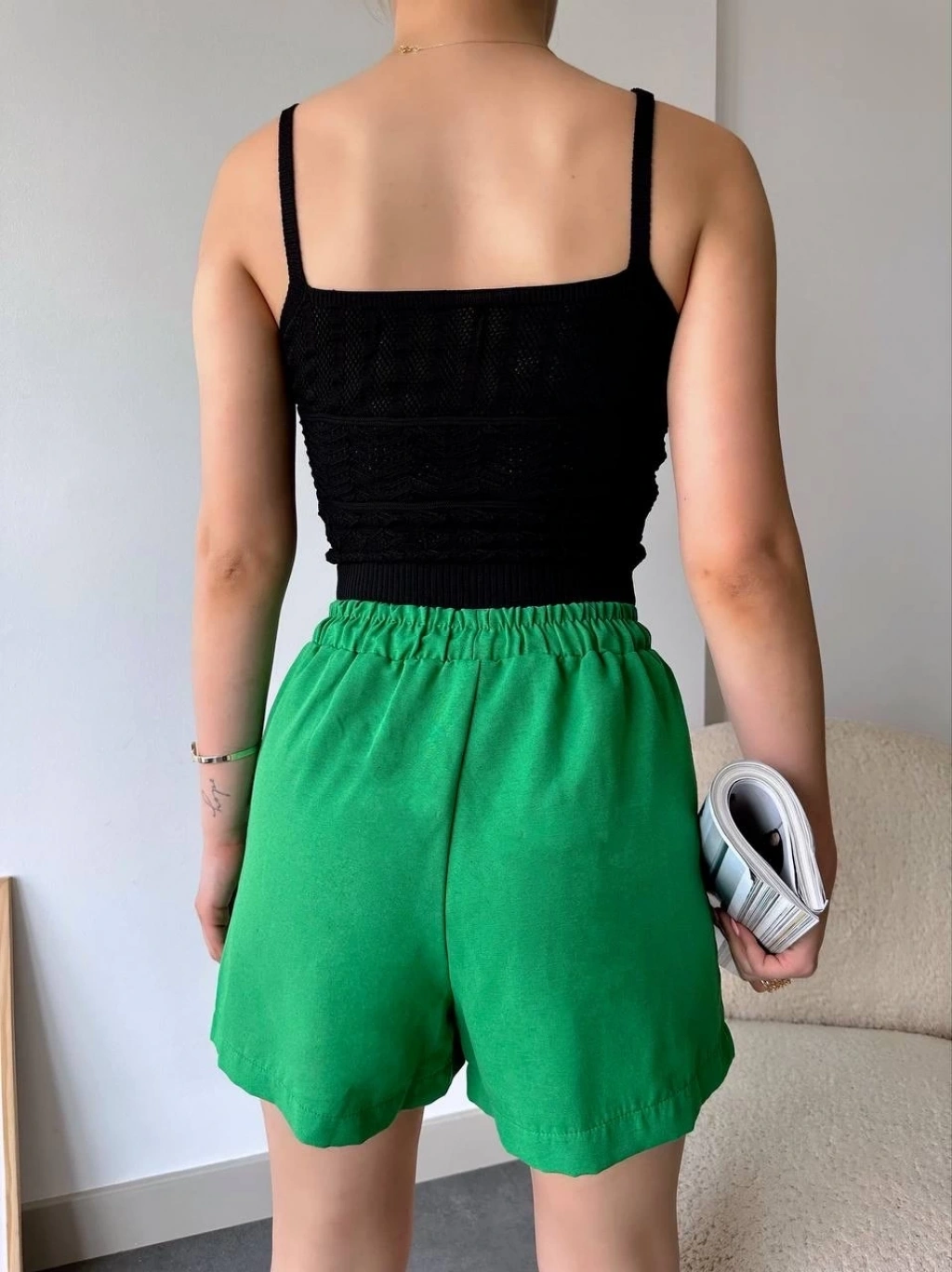 Çıtçıtlı siyah köprü tüvit şort yeşil