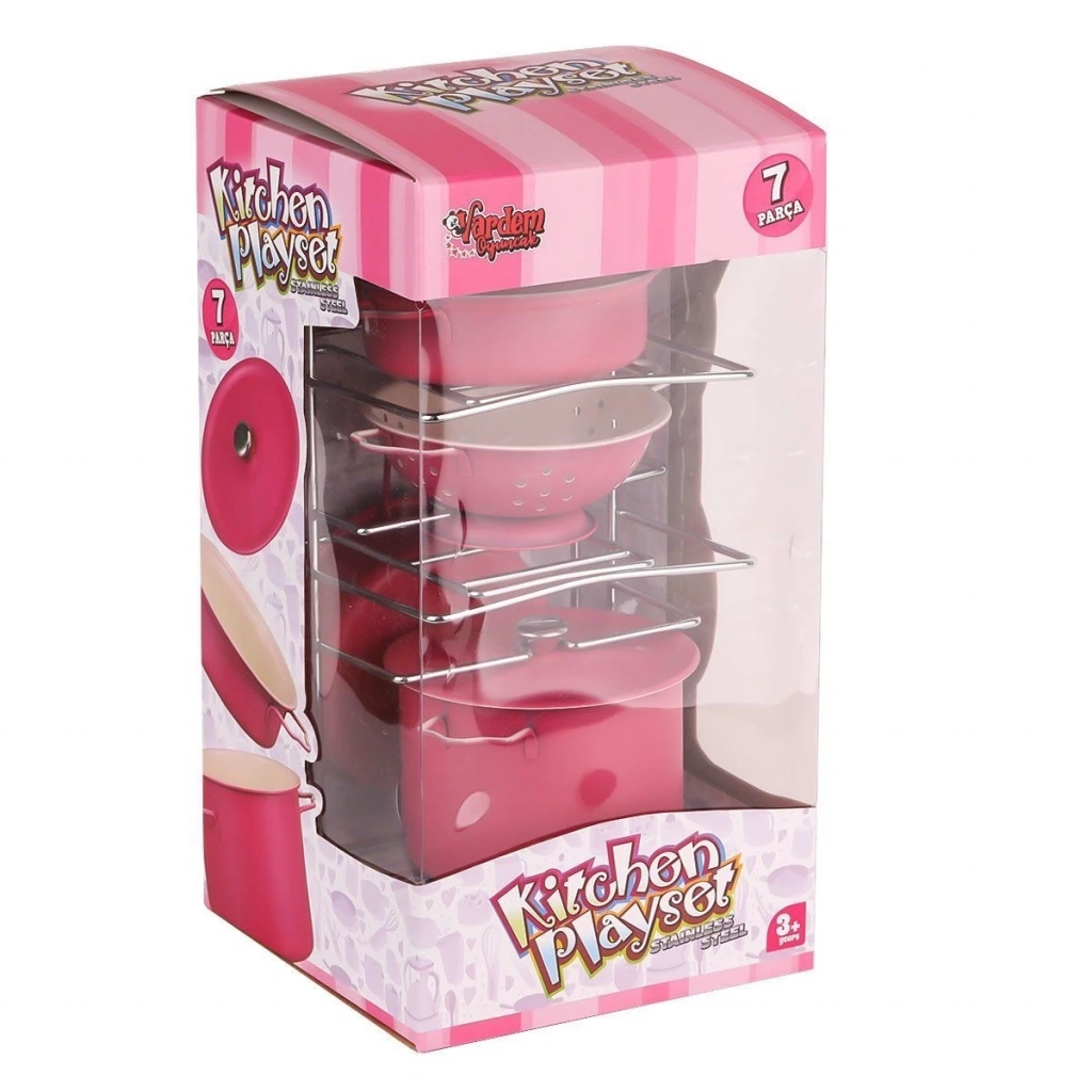ATF-683G-6 Raflı Pembe Emaye Tencere Tava Seti 7 Parça -Vardem