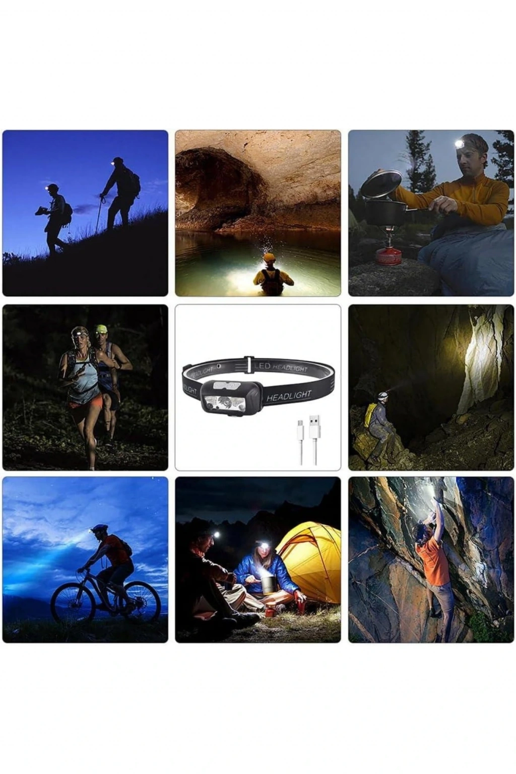 Şarj Edilebilir LED Kafa Feneri – 4 Işık Modu, IPX5 Su Geçirmez, Hareket Sensörlü