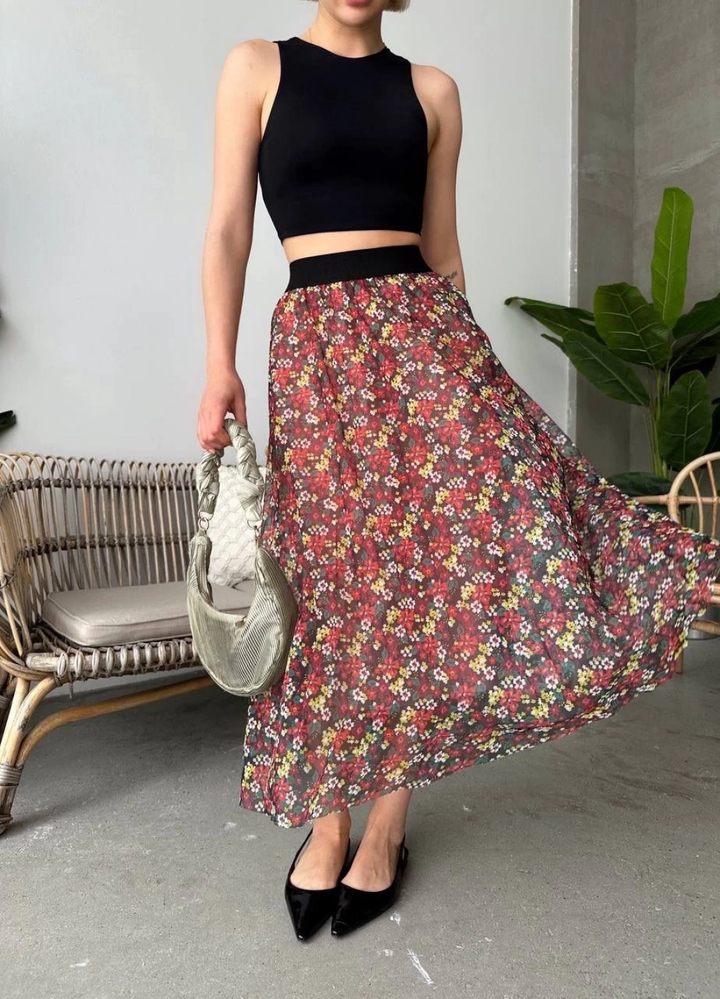 Cep detaylı oval kapaklı deri etek siyah h240048