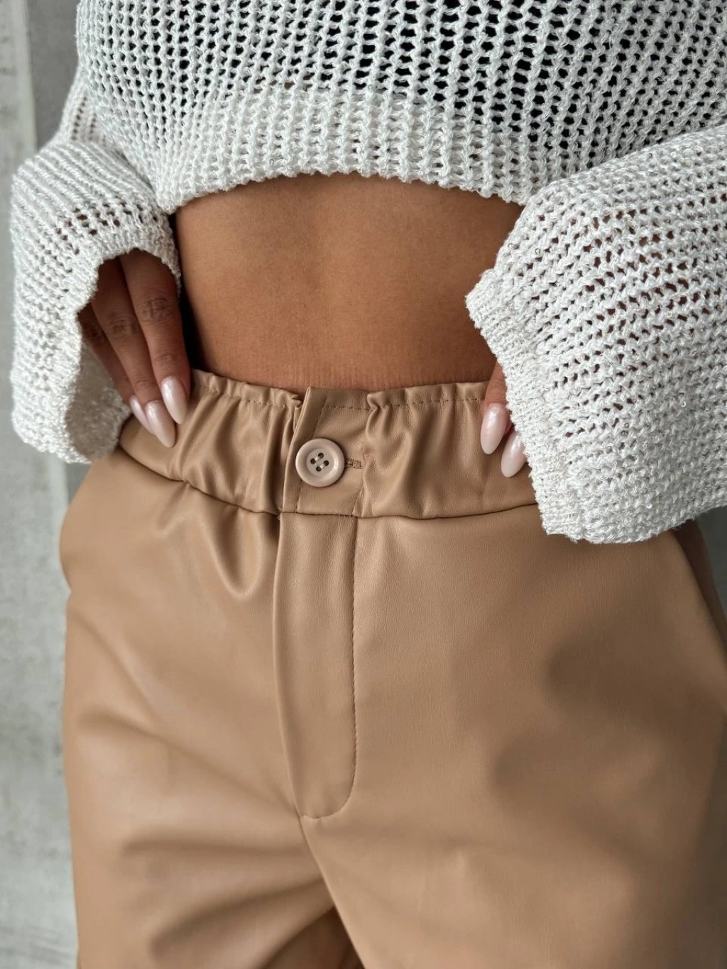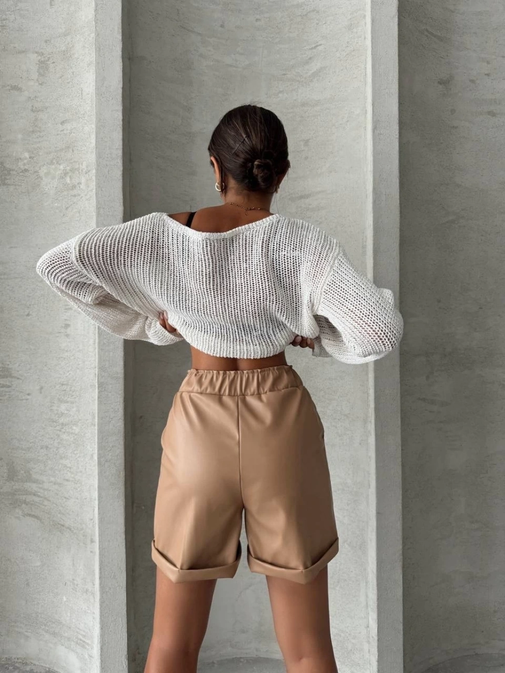 Kemerli deri şort krem h241003