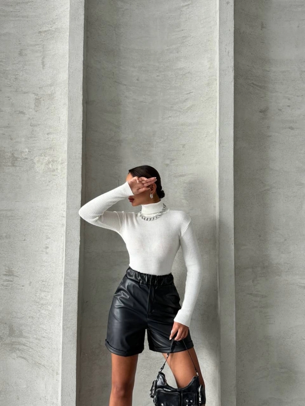 İki düğmeli kaz ayağı desen ch kumaş şort etek siyahbeyaz h26414