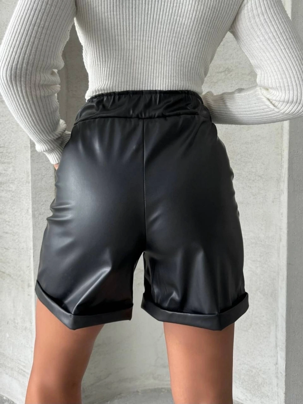 Çıtçıtlı siyah köprü tüvit şort yeşil