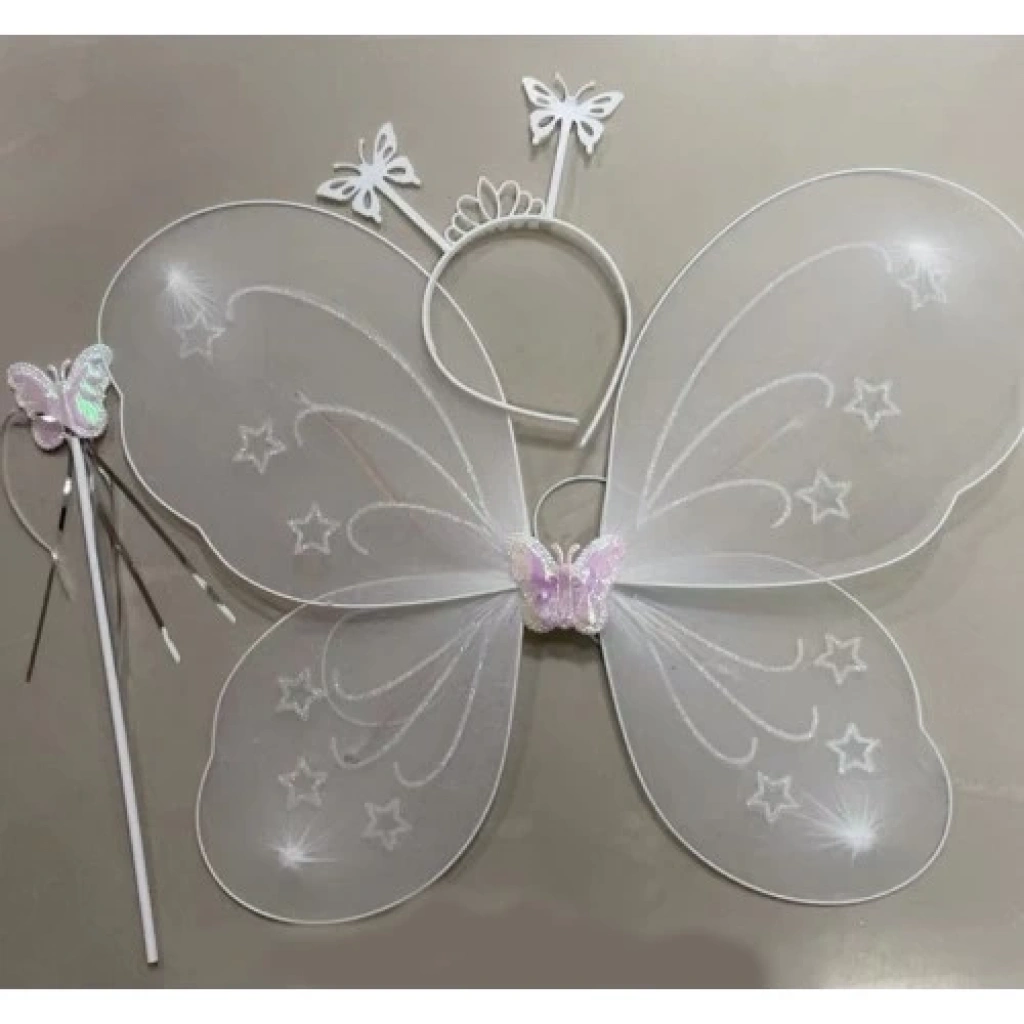 Beyaz Renk Kelebek Kanadı Tacı ve Sopası