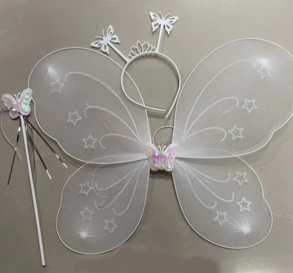 Beyaz Renk Kelebek Kanadı Tacı ve Sopası 50x37 cm (5047)