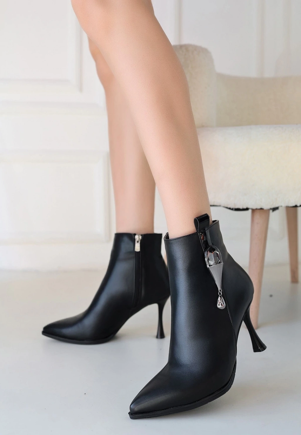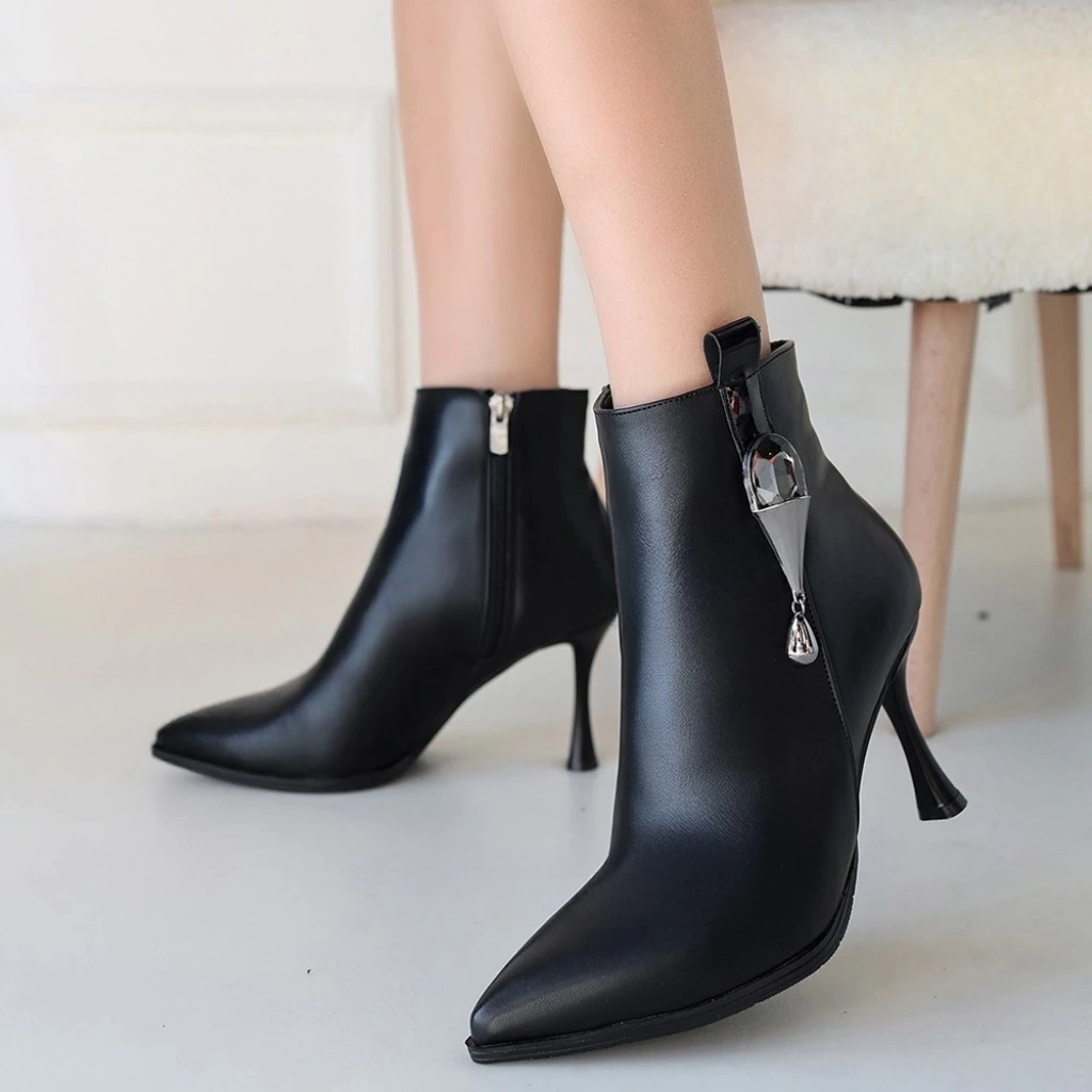 Tendy Siyah Cilt Topuklu Bot