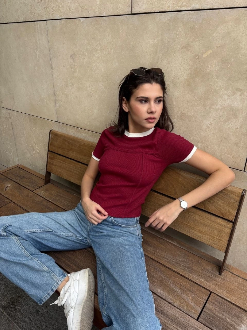 Fitilli Bisiklet Yaka İkili Bluz bordo T4341