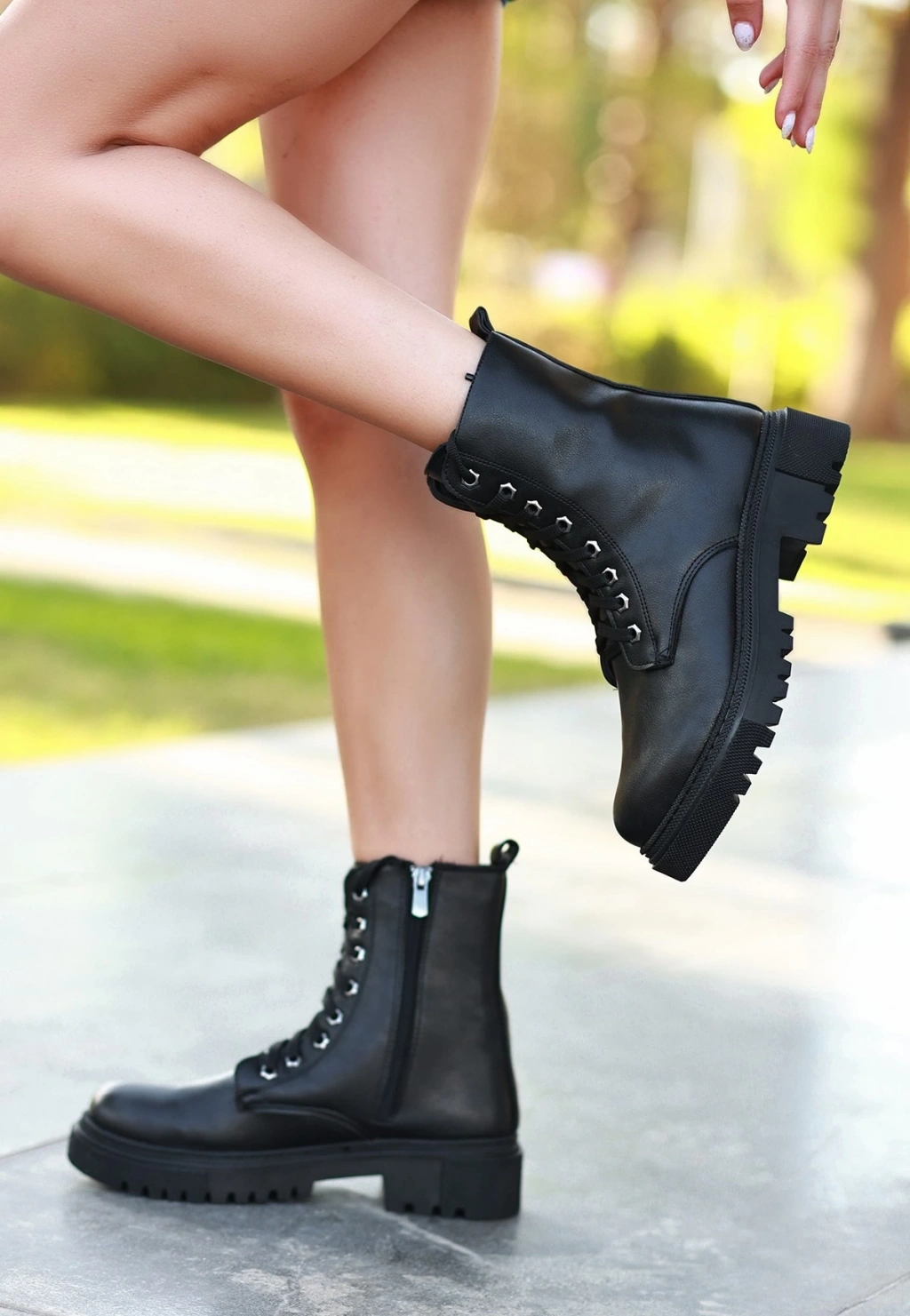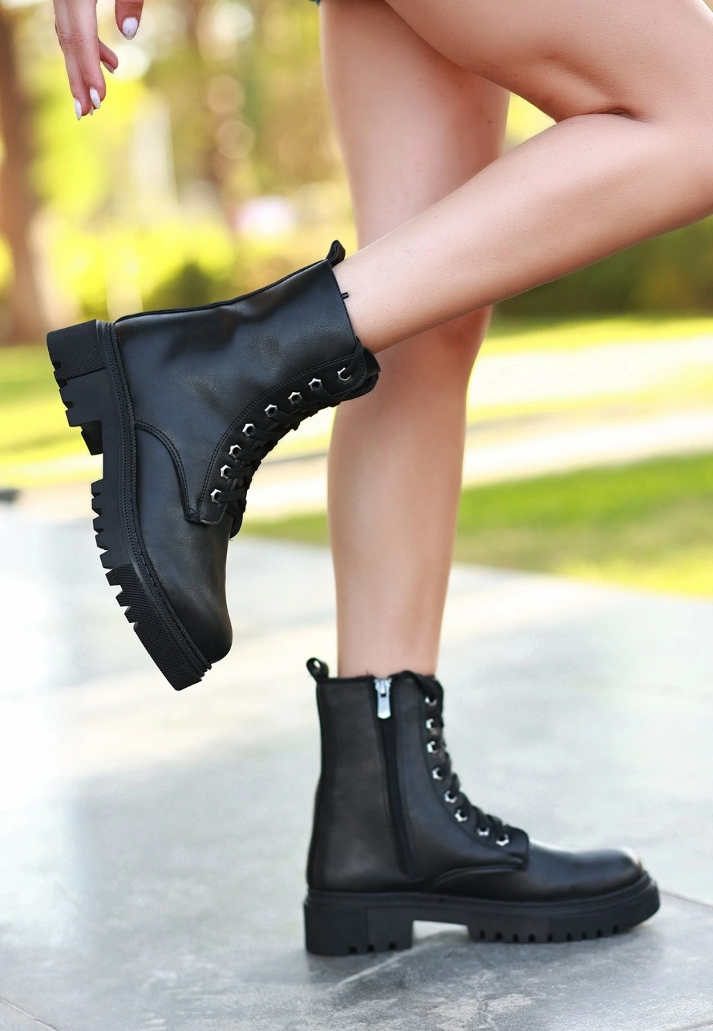 Bria Siyah Cilt Bağcıklı Bot