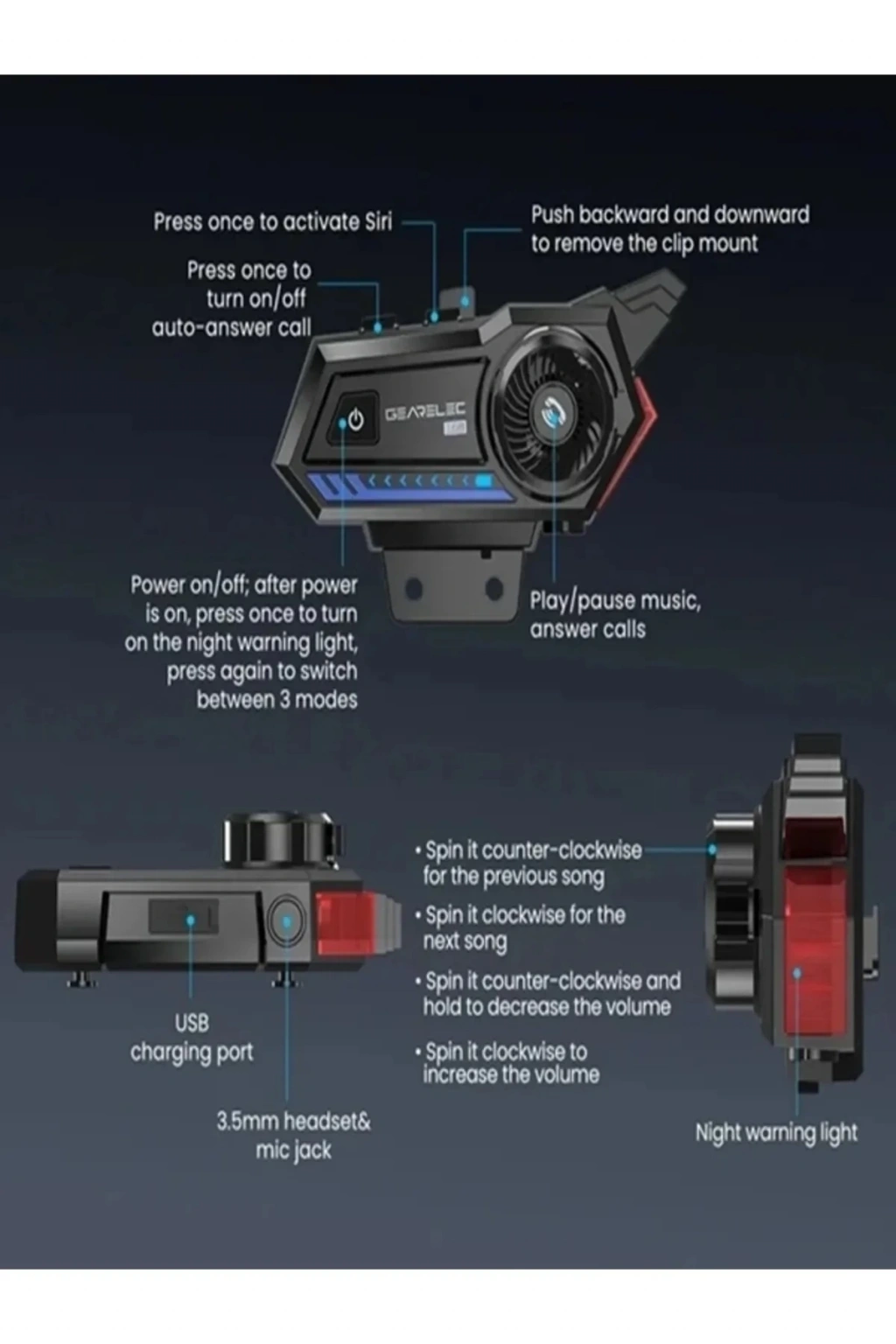 C50 Motosiklet Intercom Kask Kulaklık 1000 Mah Rgb Işıklı Bluetooth Kulaklık Ip67