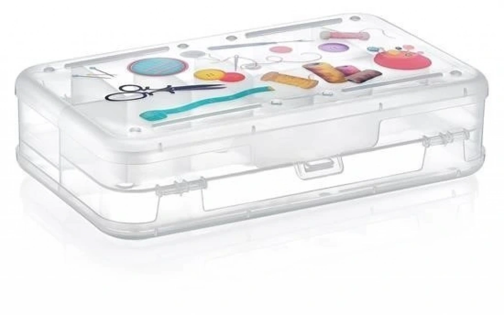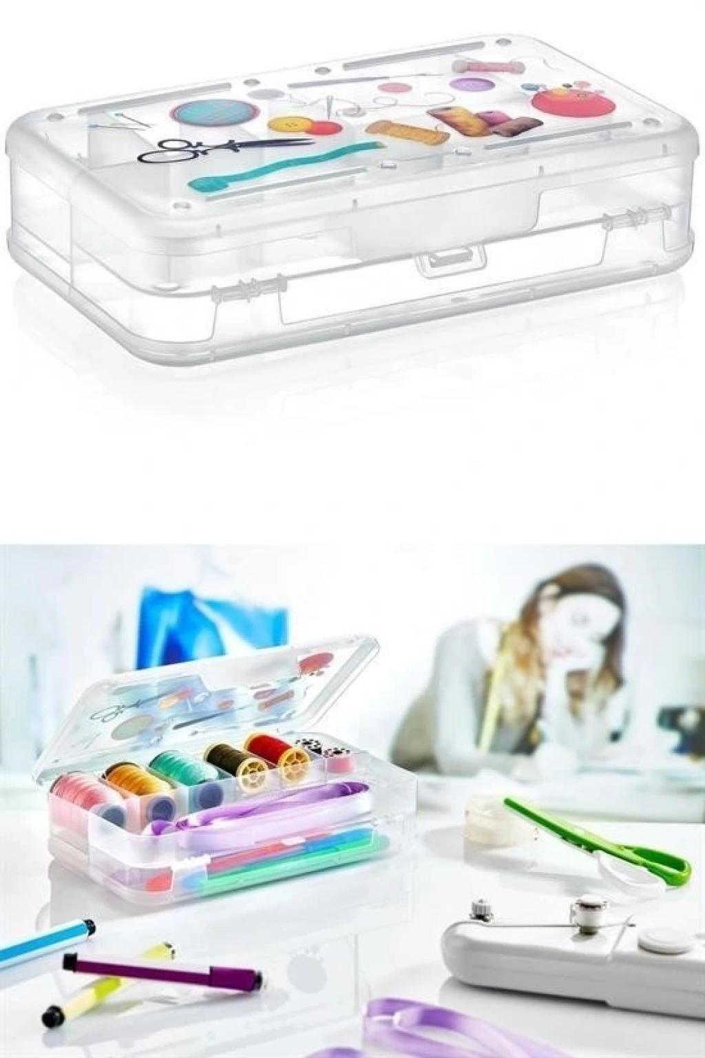 Plastik saklama kutusu içerisine makas, İğne takımları, dikiş ipleri gibi ürünleri rahatlıkla sığdırabilirsiniz