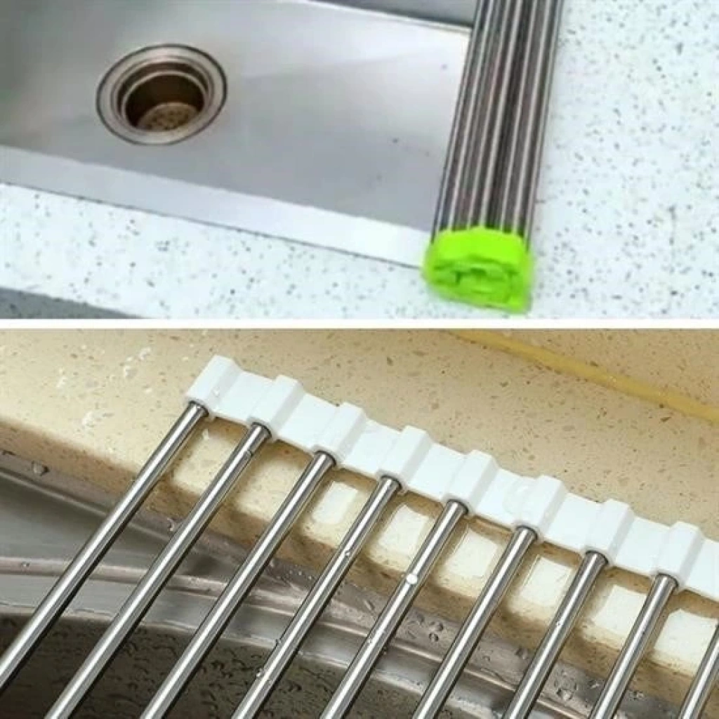 BUFFER® Evye Üstü Katlanır Nihale Paslanmaz Çelik Pratik Sebze Meyve Bulaşık Kurutma Süzgeci