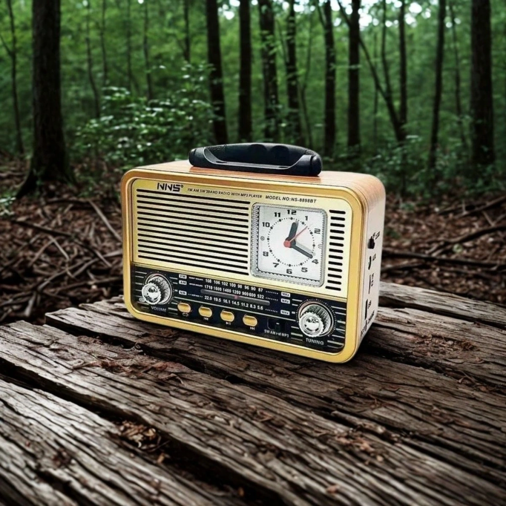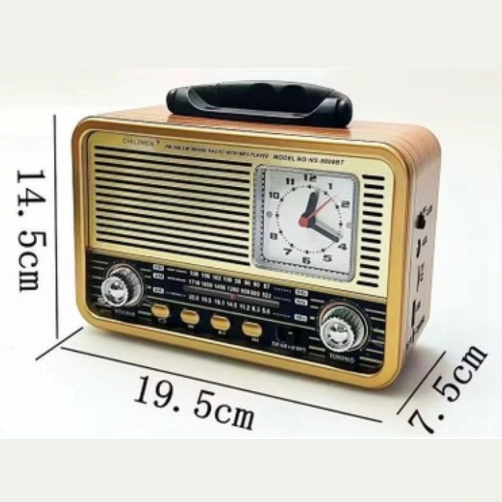 Geçmişin retro havasını modern teknolojinin konforuyla yaşamak isteyenler için BUFFER® Orta Boy Saat Göstergeli Retro Bluetooth Hoparlörlü Radyo NS-8898 ideal seçimdir!