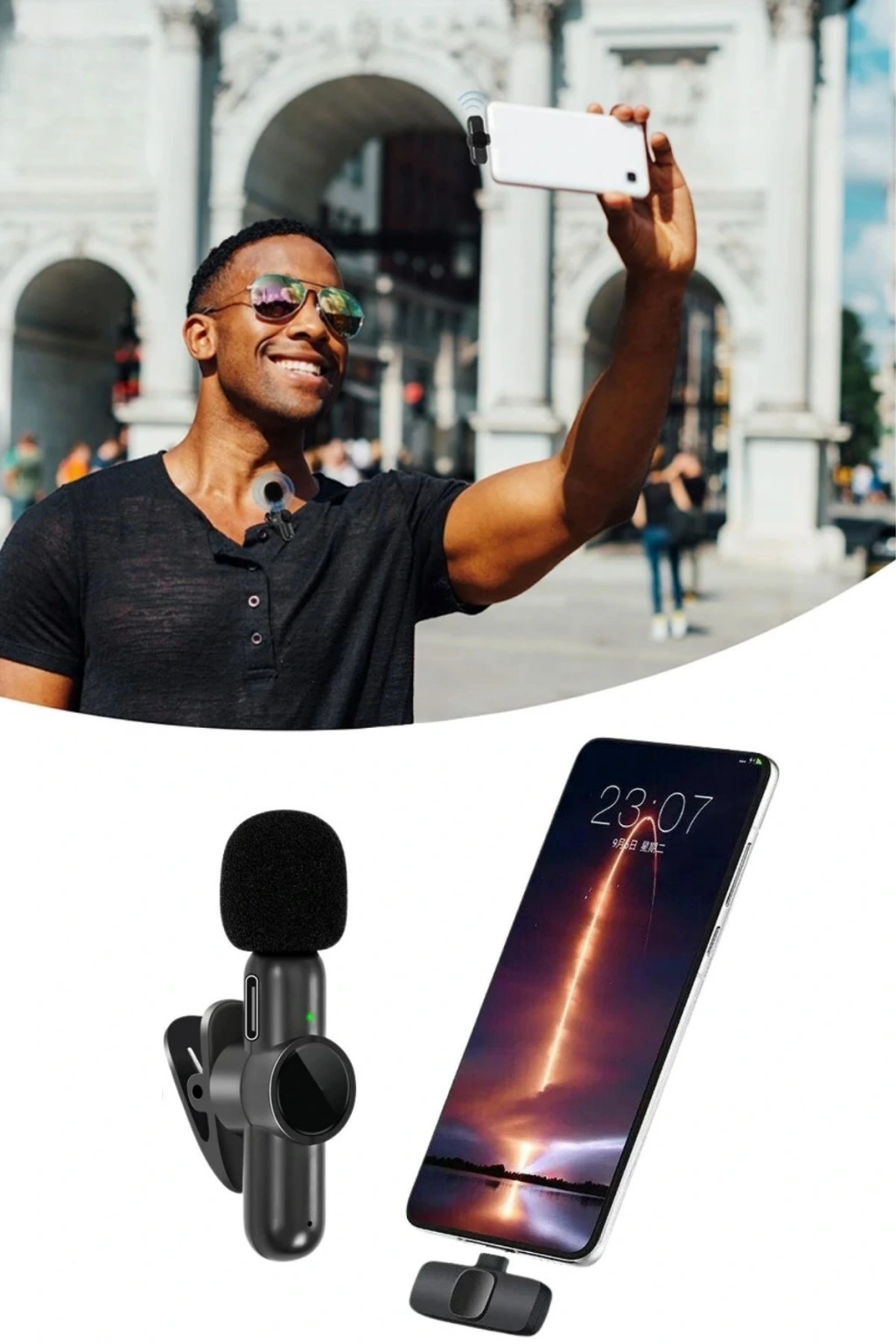 BUFFER® Type C Uyumlu İphone Dönüştürücülü Kablosuz Yaka Mikrofonu Android ve İphone Uyumlu Mini Mikrofon