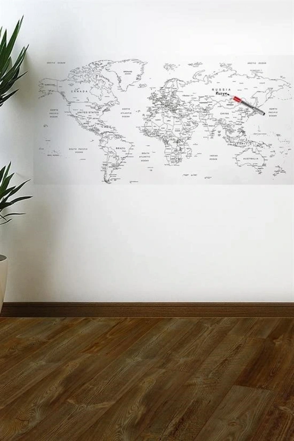 Yazılabilir Dünya Haritası Manyetik Duvar Stickerı 110 x 56 cm