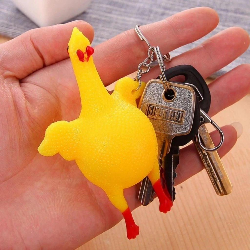 Bu eğlenceli anahtarlık, sıra dışı ve komik bir tasarıma sahiptir. Tavuk figürü ile tasarlanmış olan bu anahtarlık, kullanıcılara hem pratik bir anahtarlık hem de eğlenceli bir oyun deneyimi sunar.