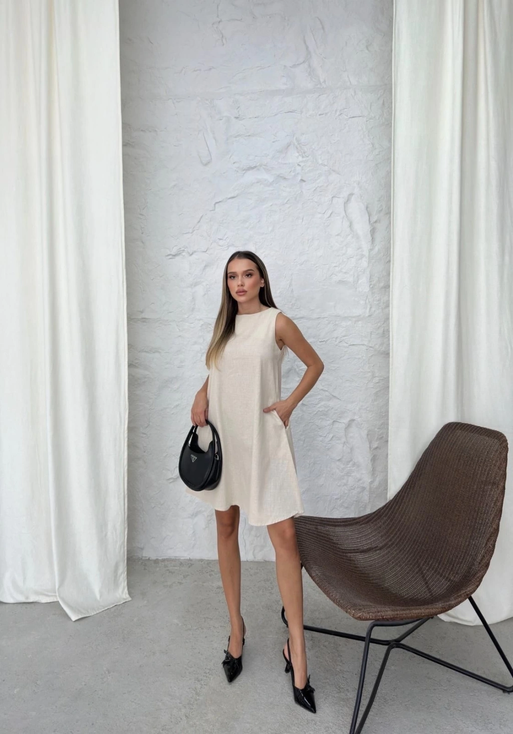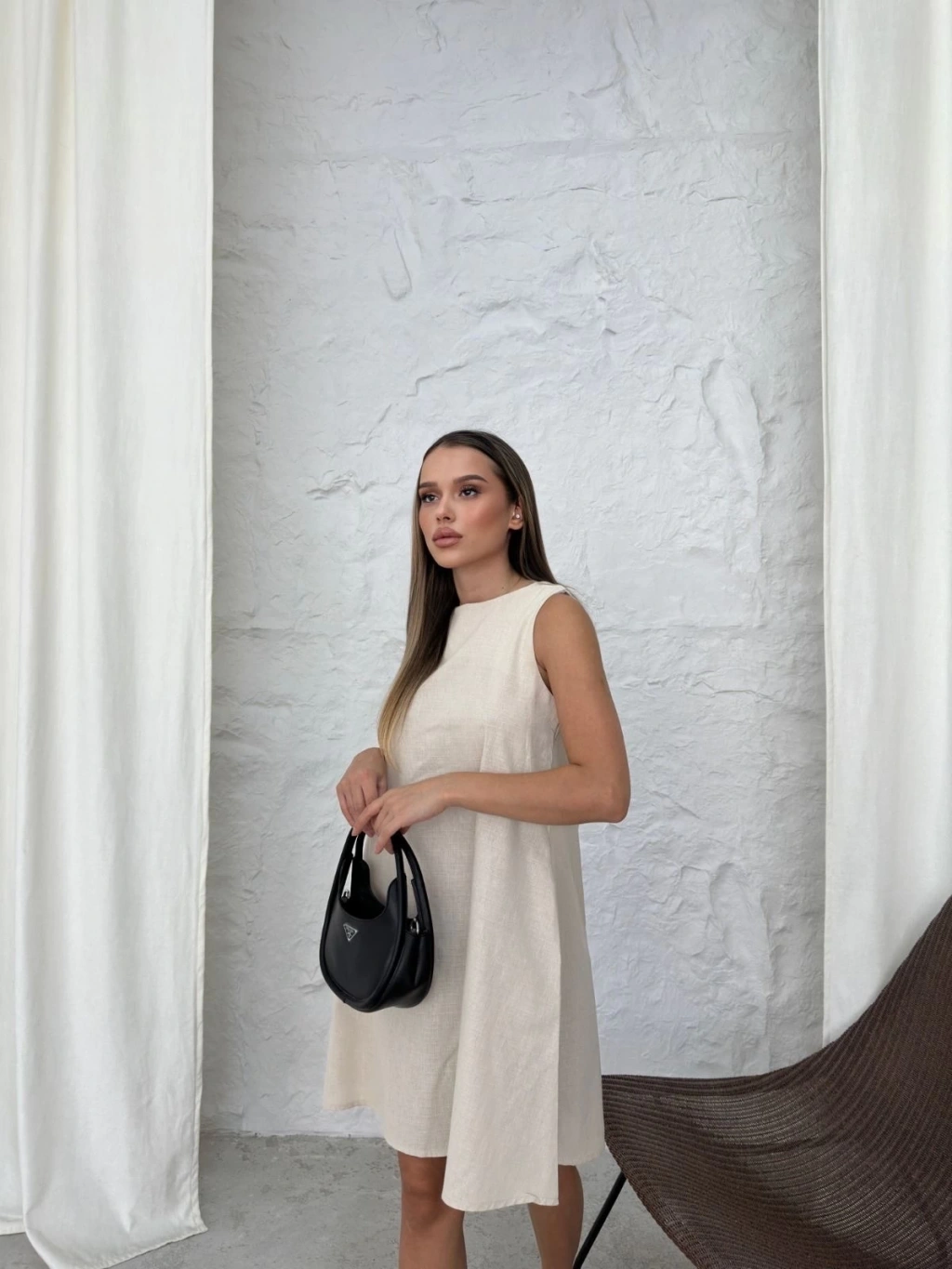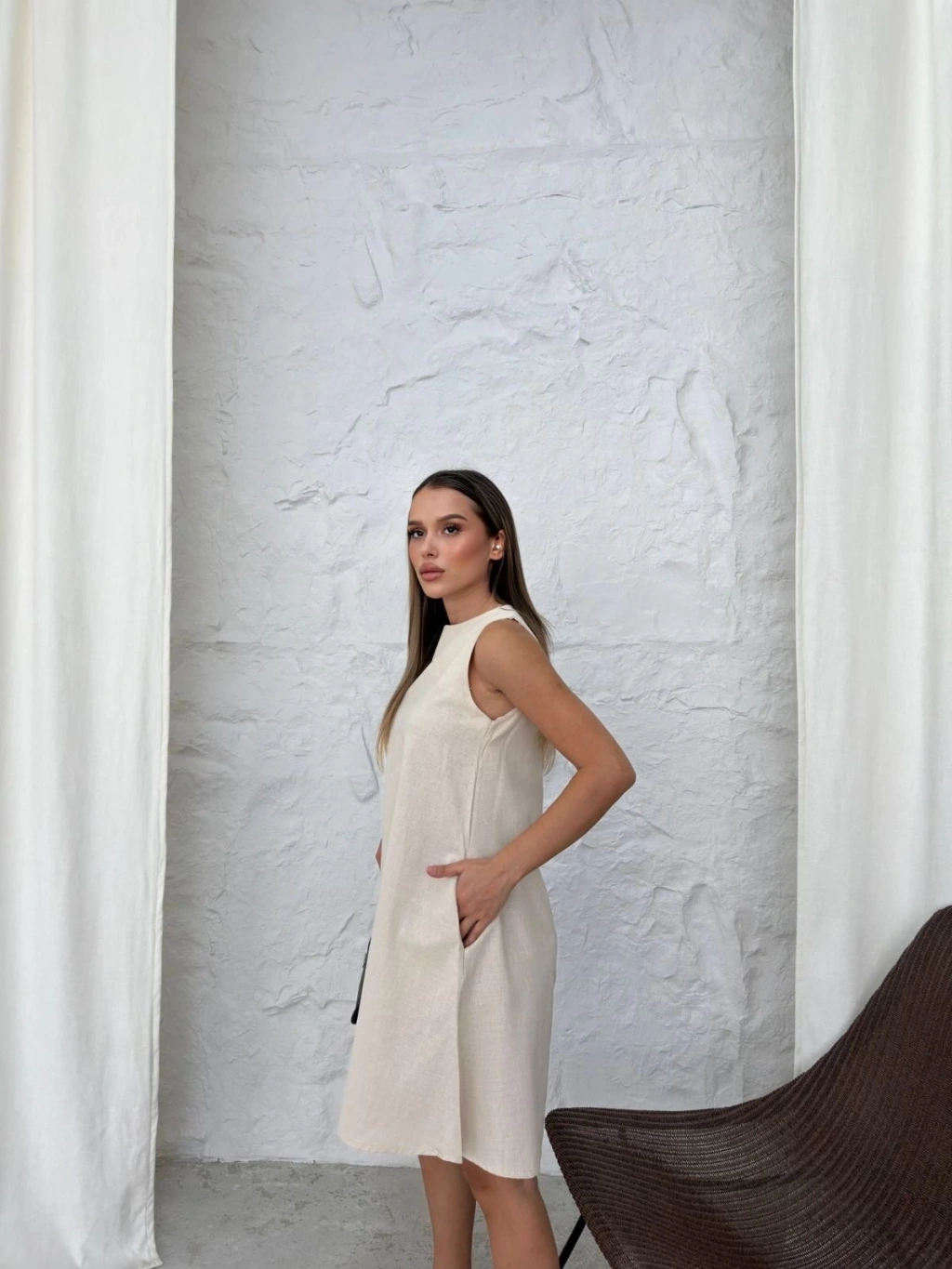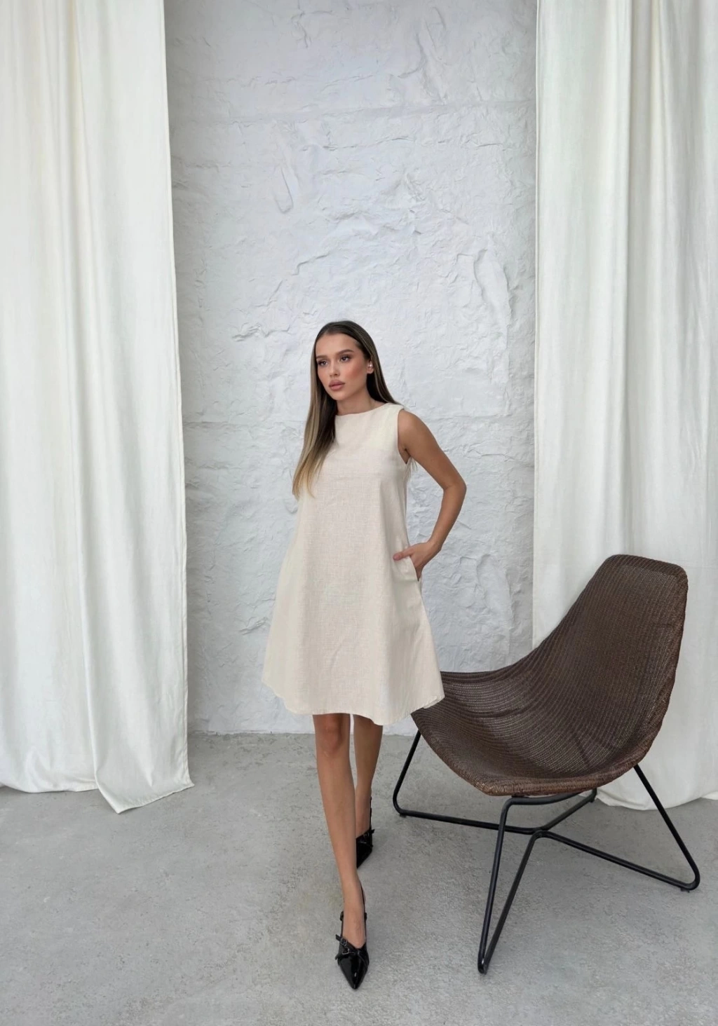 Fermuar detaylı fitilli şardonlu elbise bej a3178