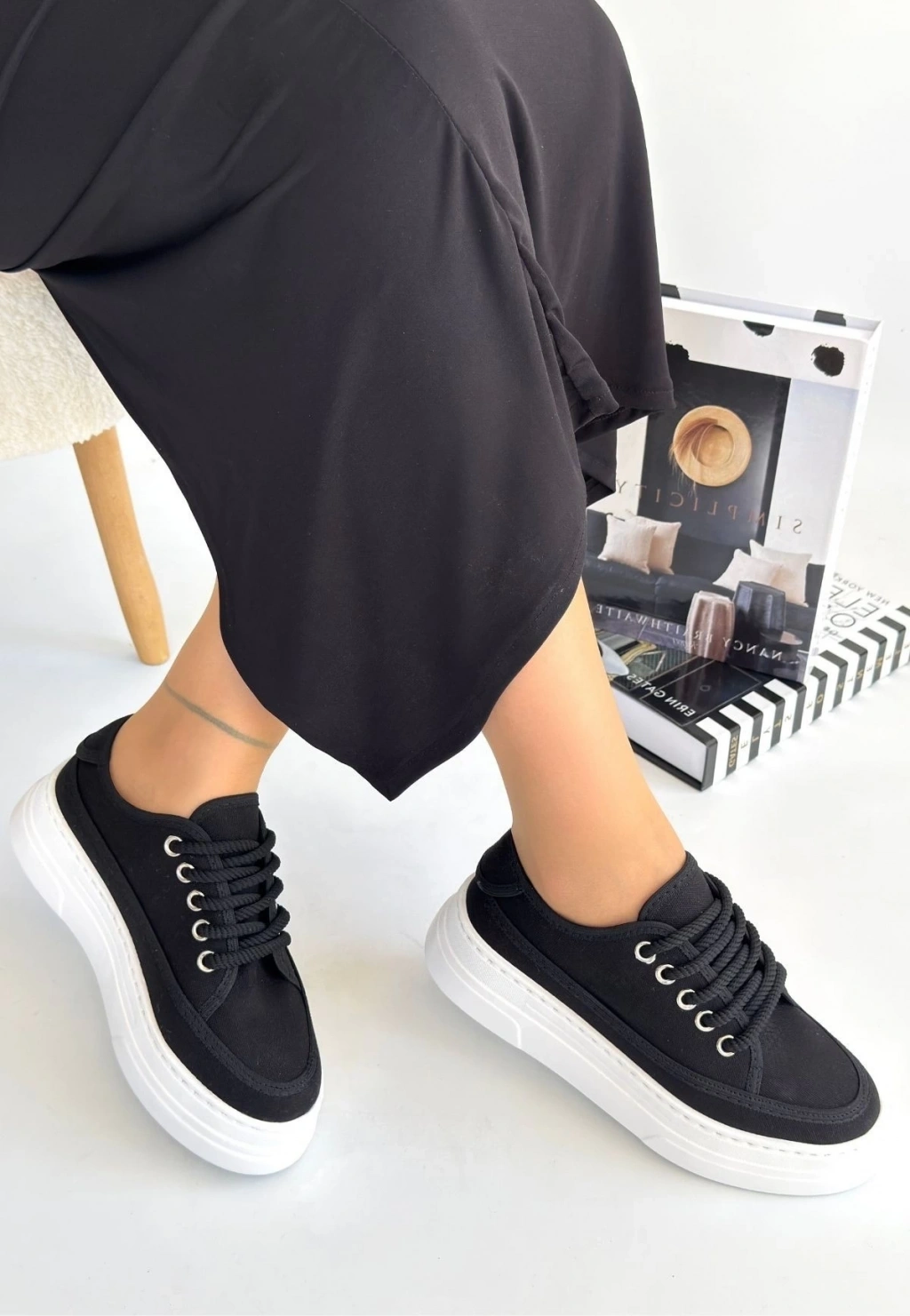 Carin Siyah Keten Bağcıklı Spor Ayakkabı