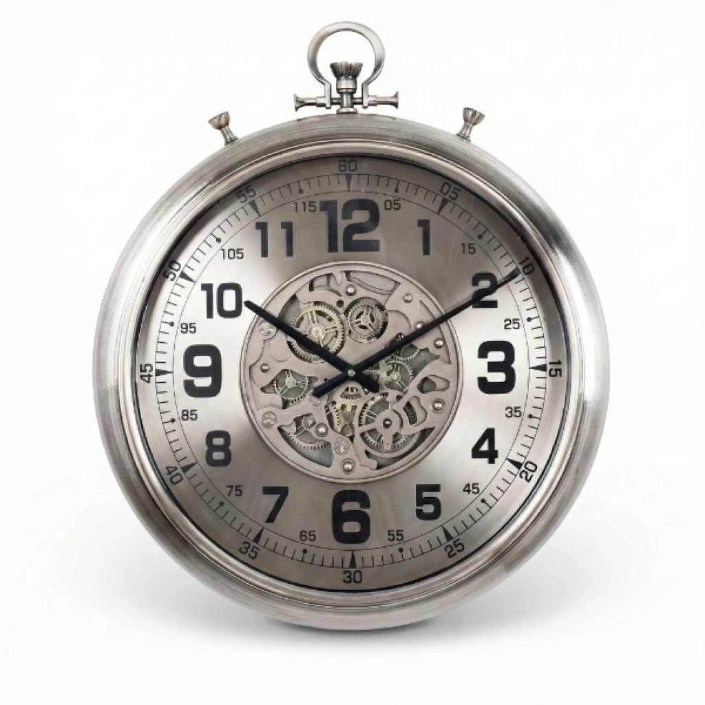 Çarklı Duvar Saati Gümüş Detaylı 59 cm