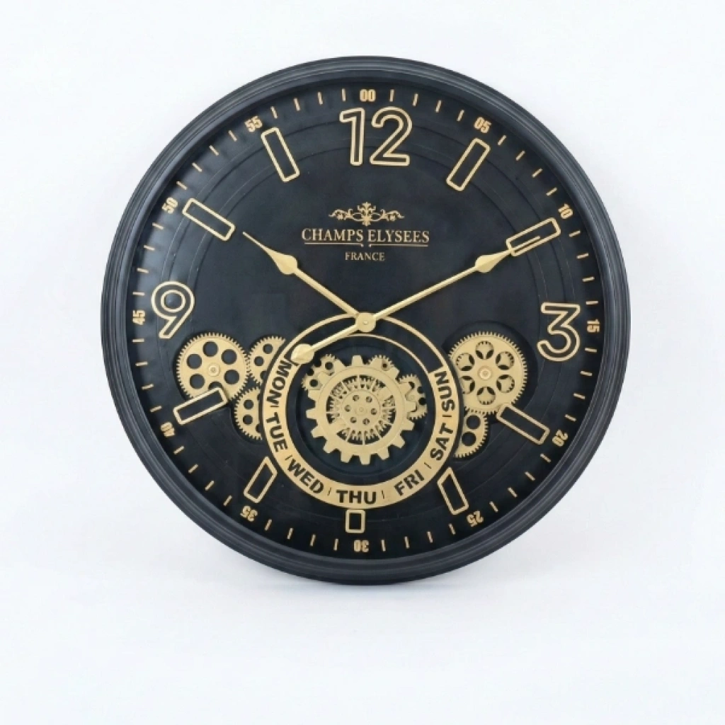 Çarklı Duvar Saati Altın Rengi Detaylı 59 cm