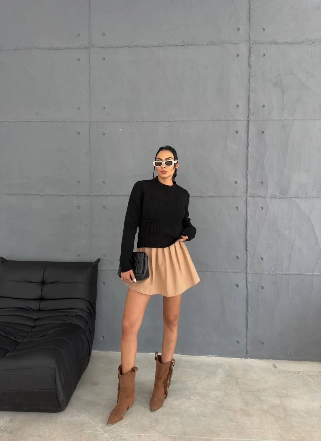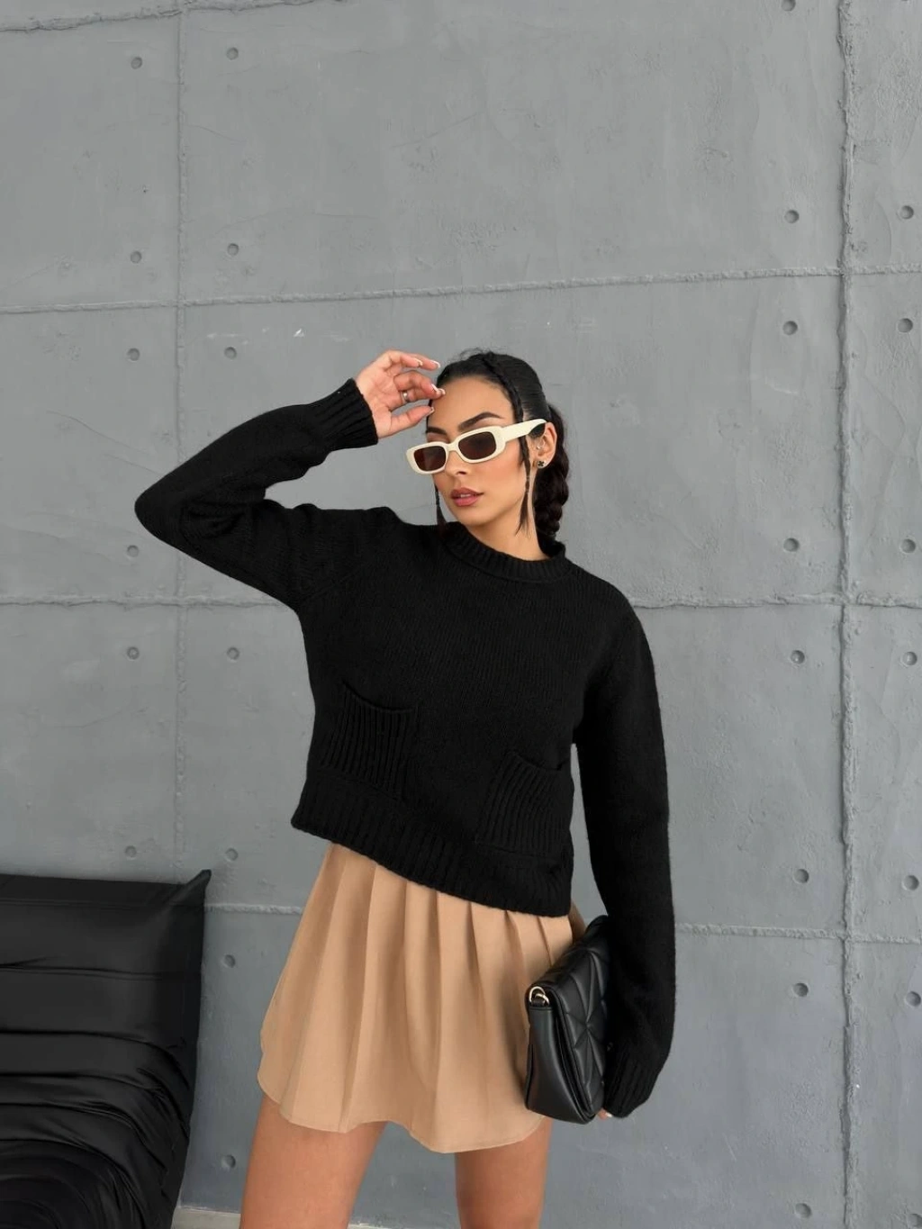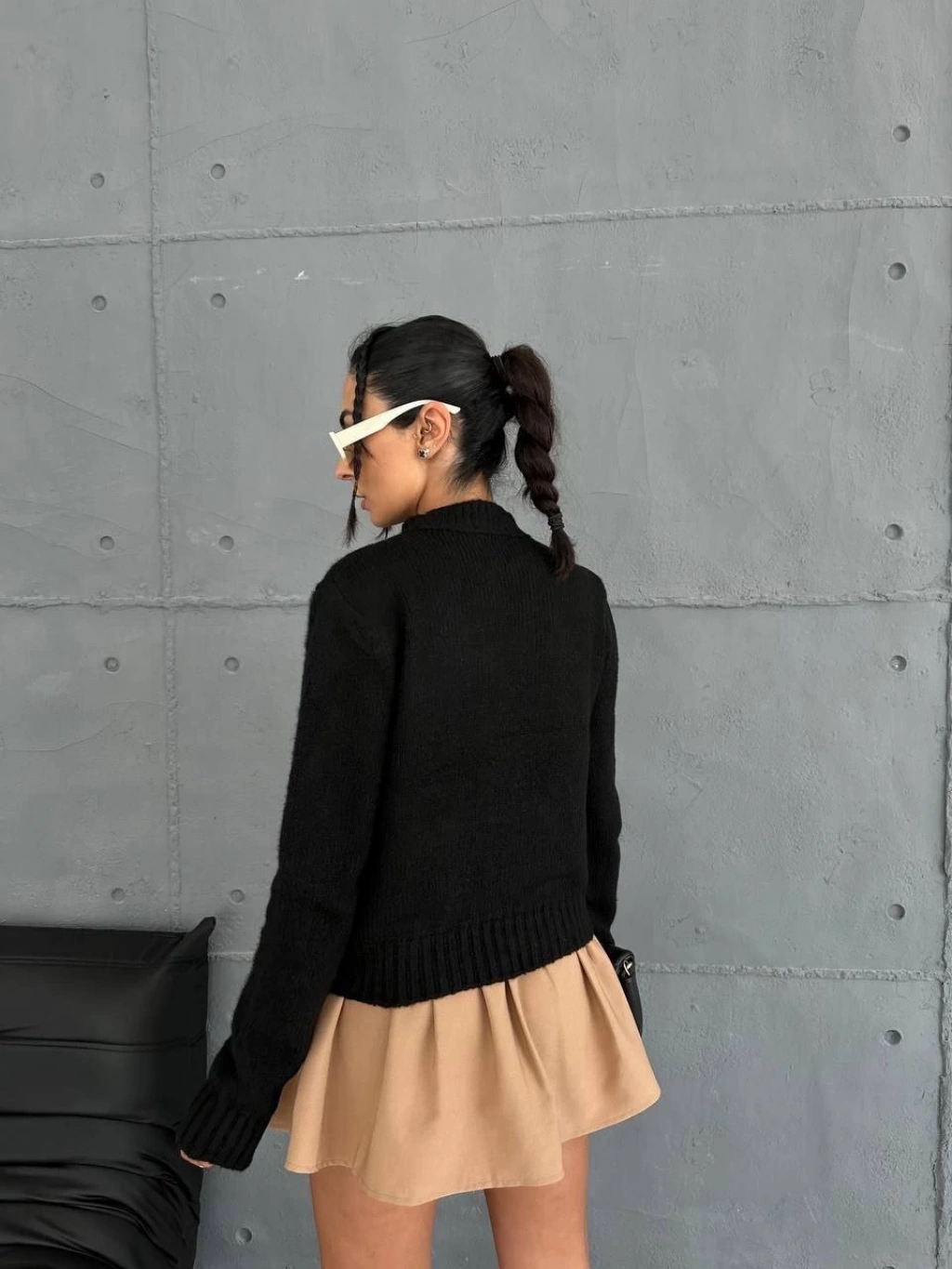 Başıkçı yaka dar kesim kaşkorse kazak gri w3103