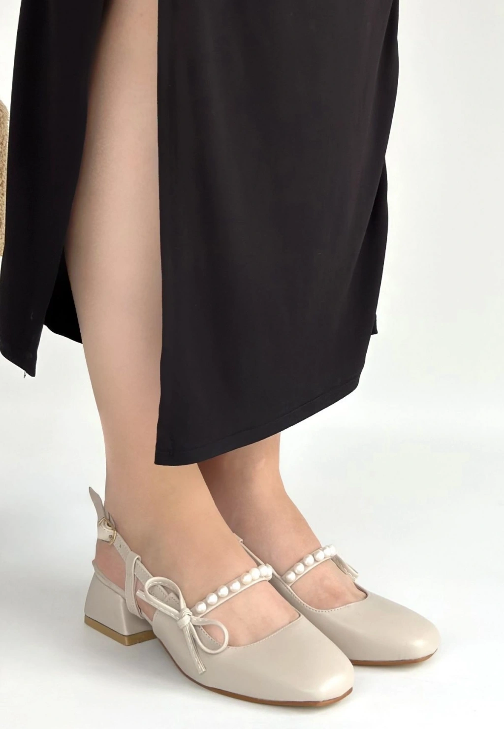 Nıvra Bej Cilt Topuklu Ayakkabı