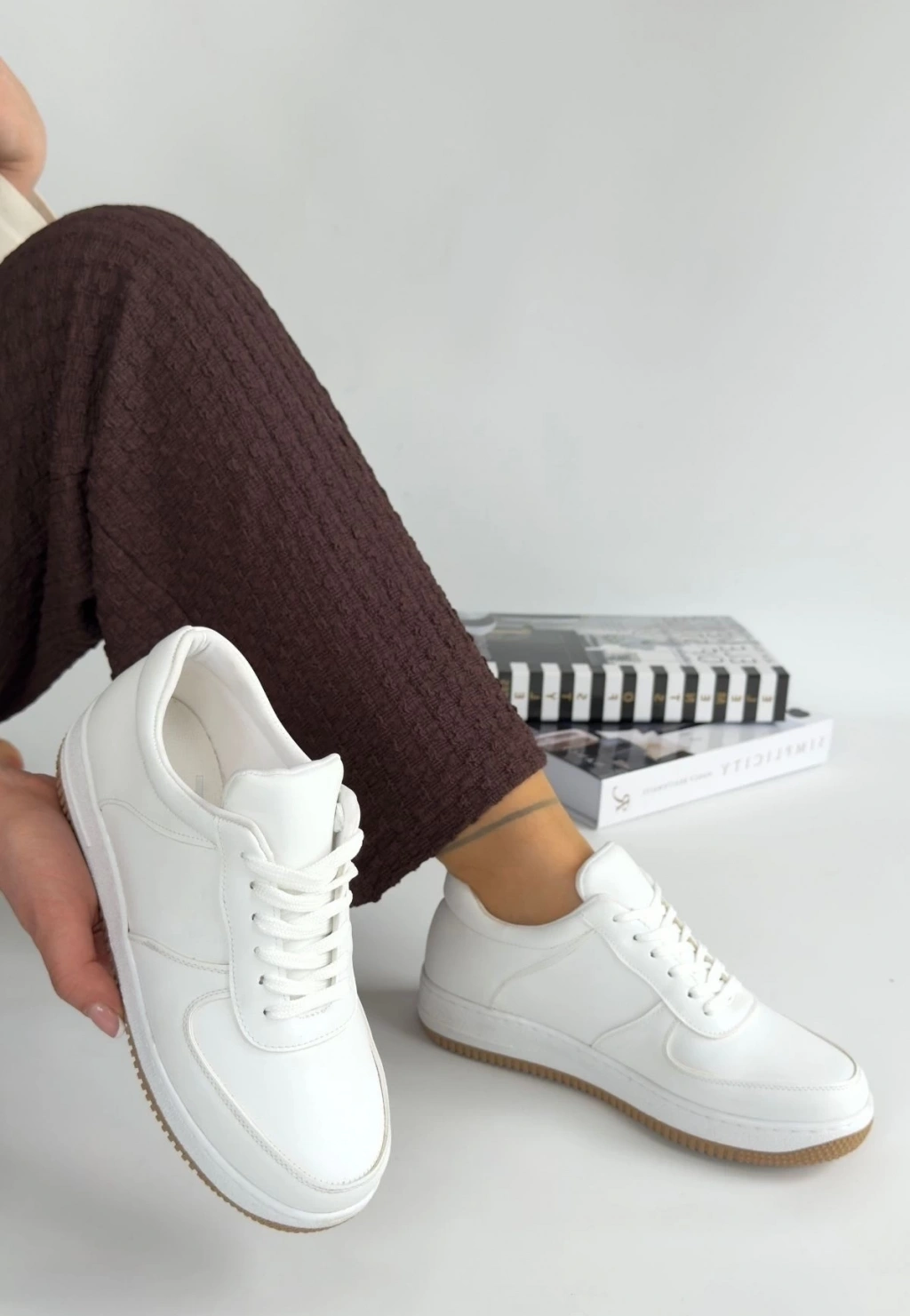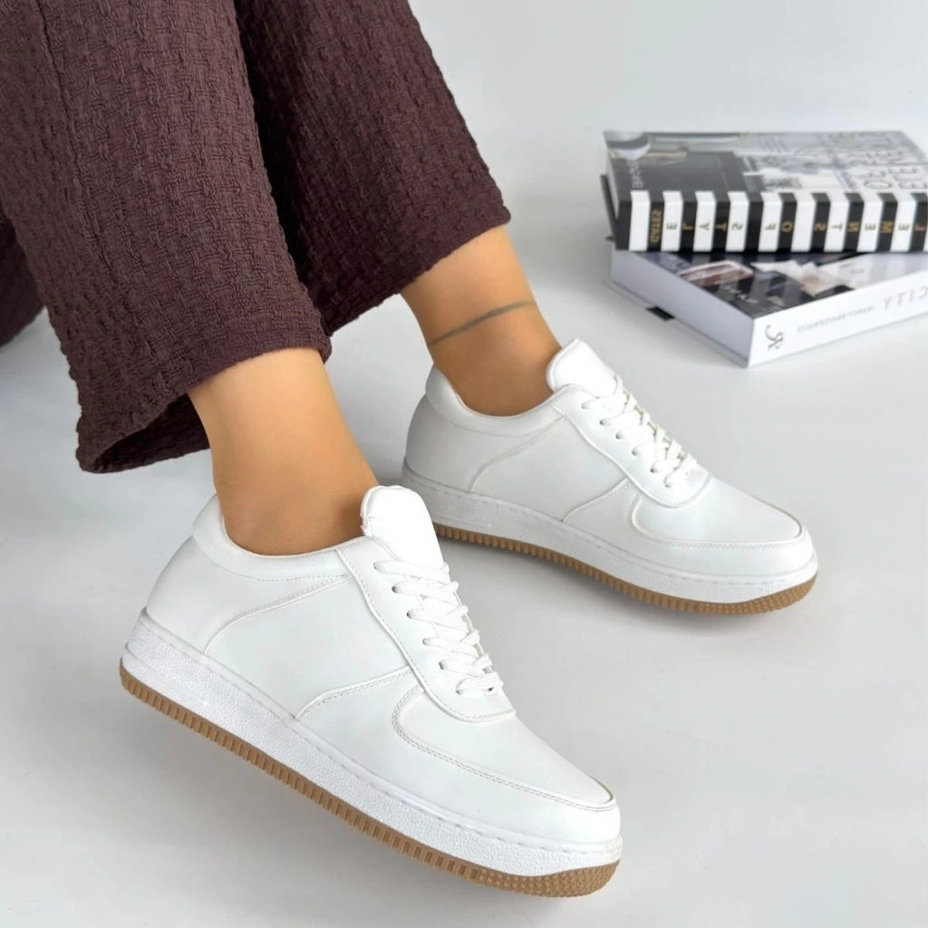 Tawen Beyaz Cilt Bağcıklı Spor Ayakkabı