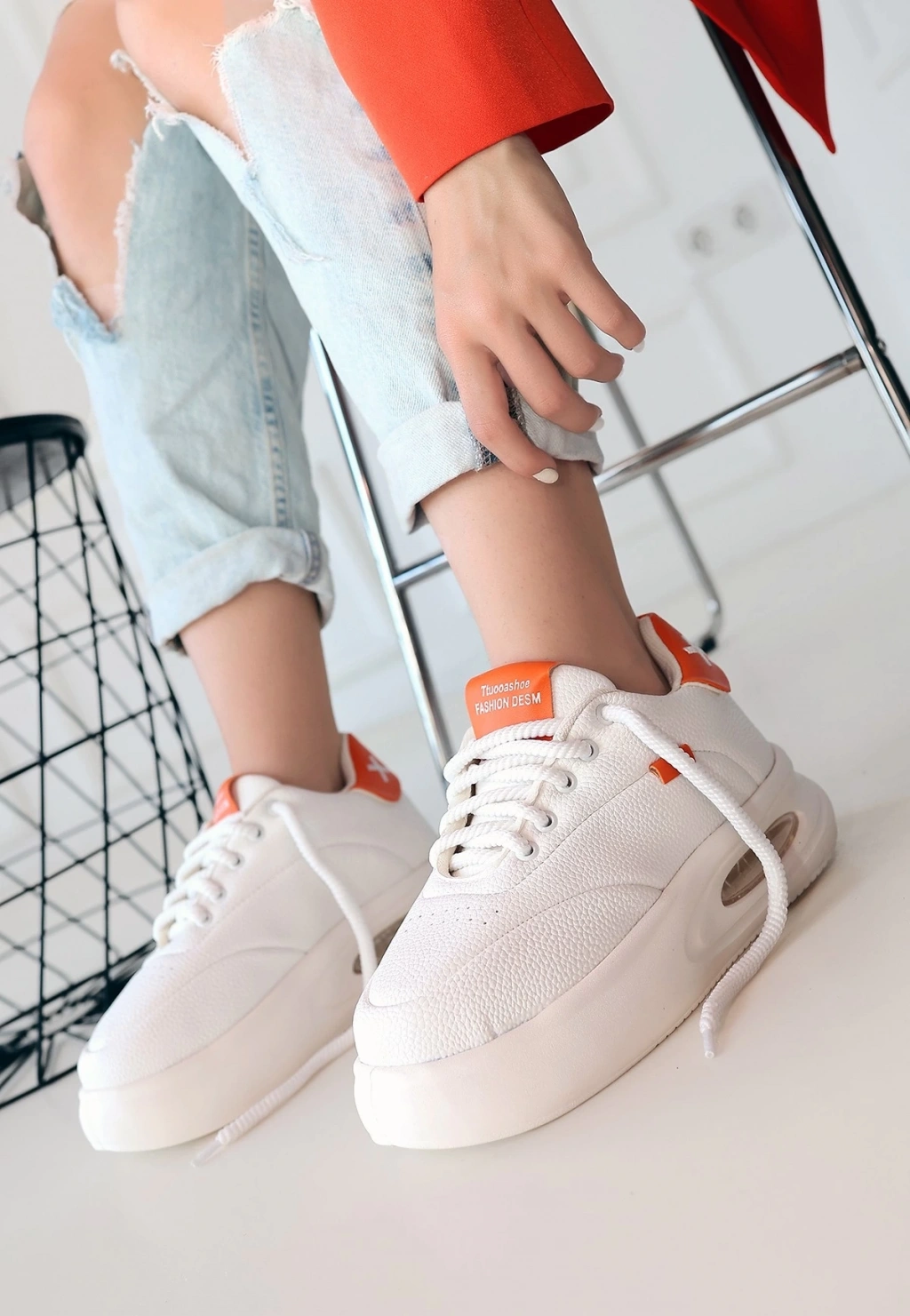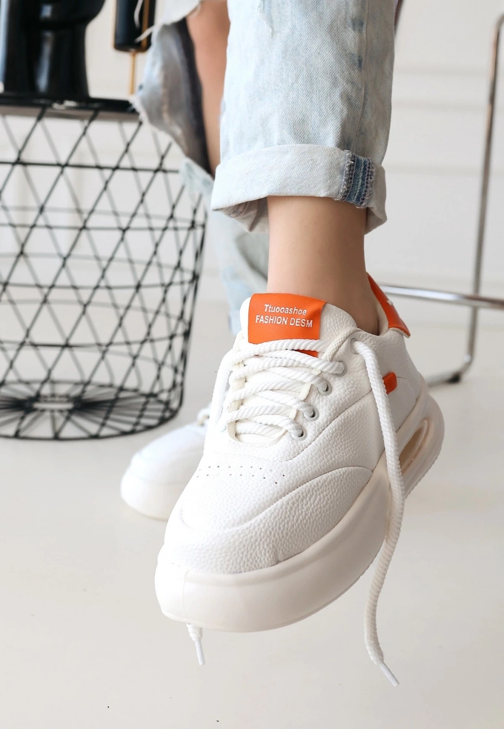 Chris Beyaz Cilt Turuncu Detaylı Bağcıklı Spor Ayakkabı