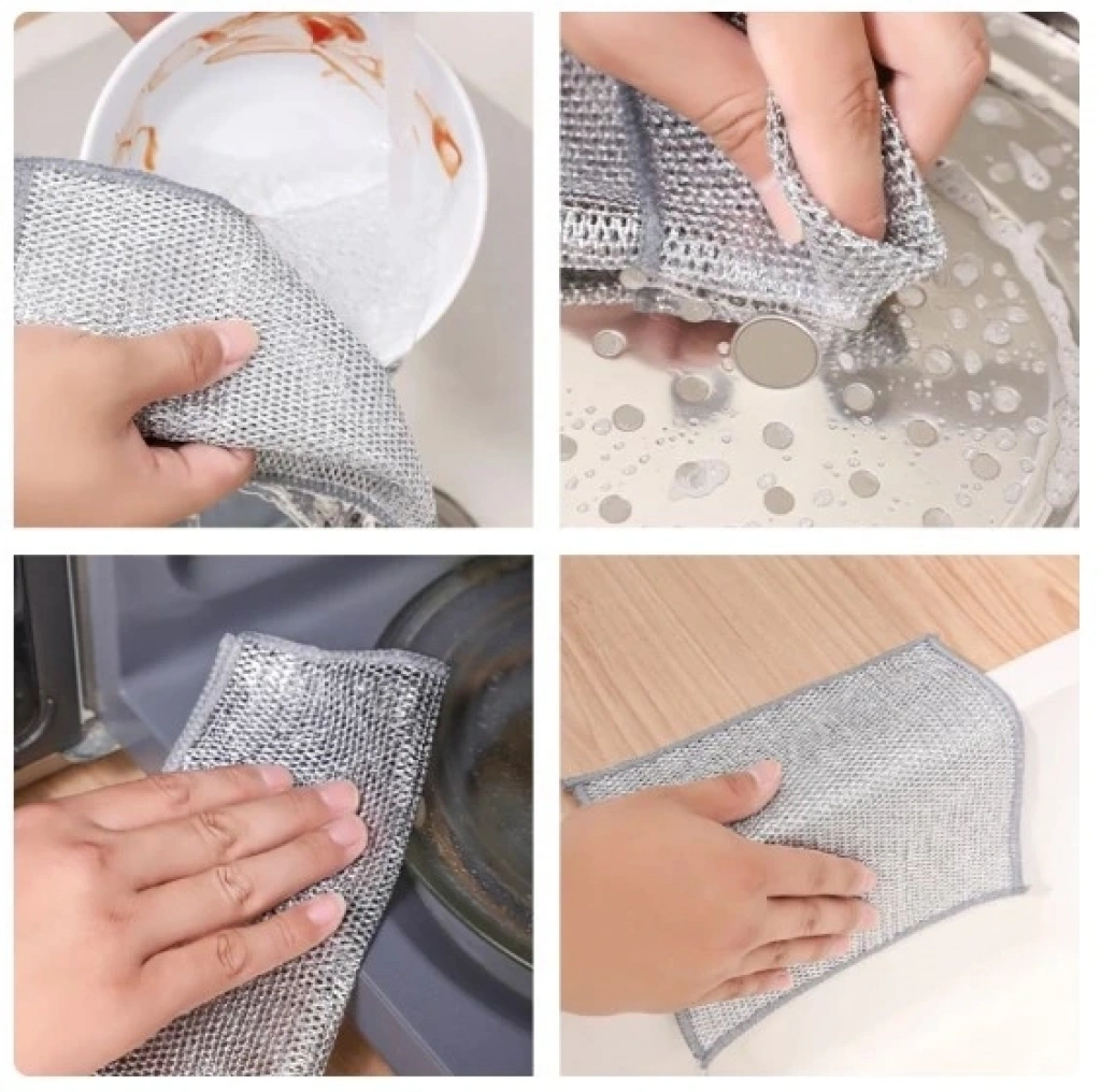 5 Adet Çok Fonksiyonlu Çizmeyen Tel Bulaşık Bezi Bulaşık Havlusu Bulaşık Temizlik Ovma Bezi (5047)
