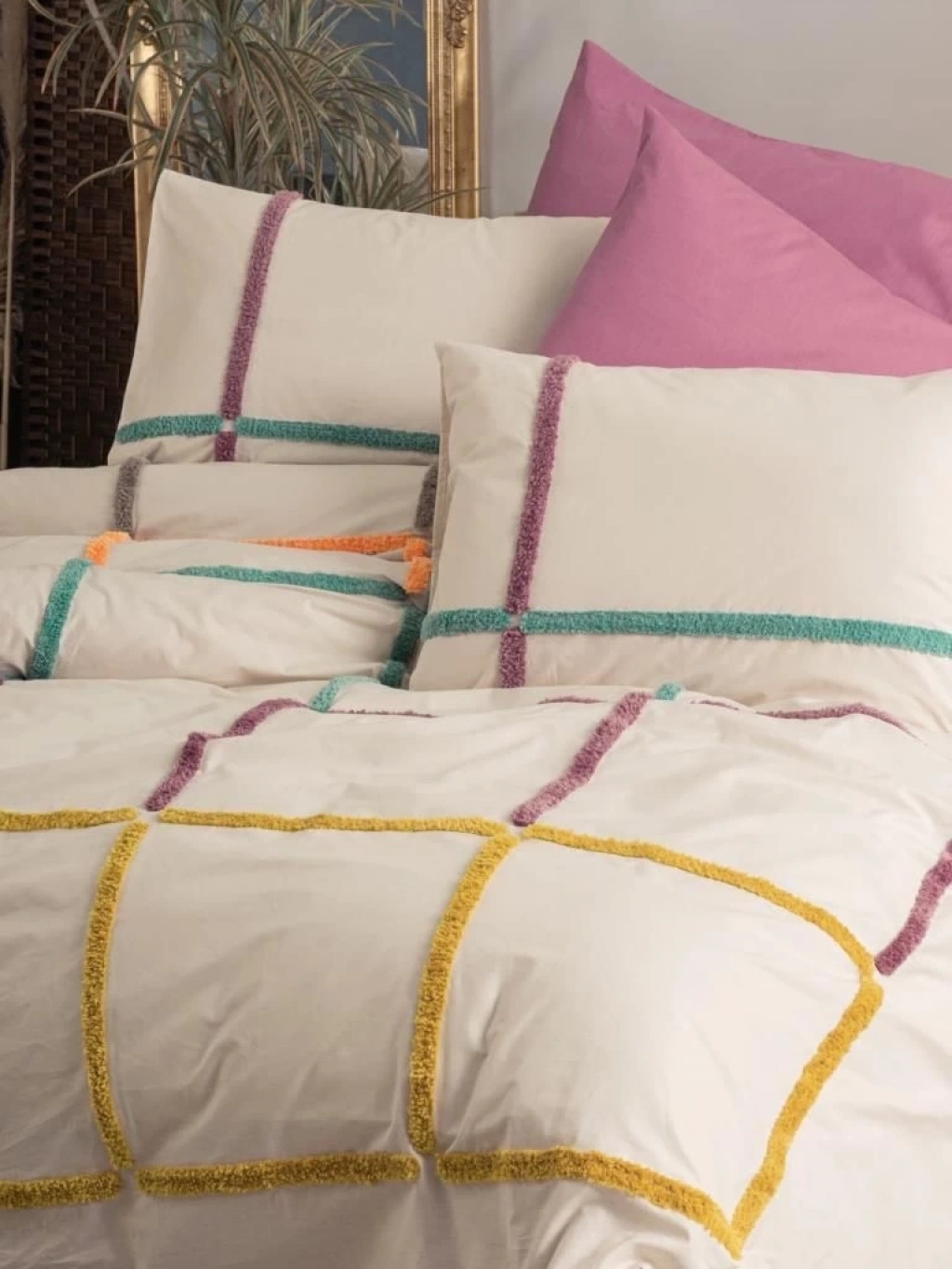 Cotton Box Puff Nakışlı Ranforce Çift Kişilik Nevresim Takımı İnsula Gülkurusu