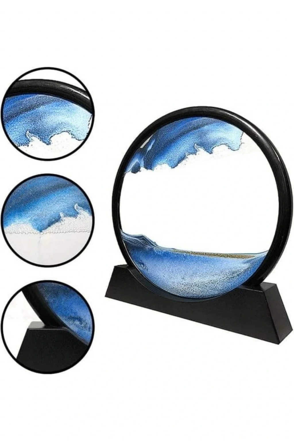 7 Inç Mavi Orta Boy Dekoratif Yuvarlak Şık Kum Tablosu Modern Dekoratif Süs