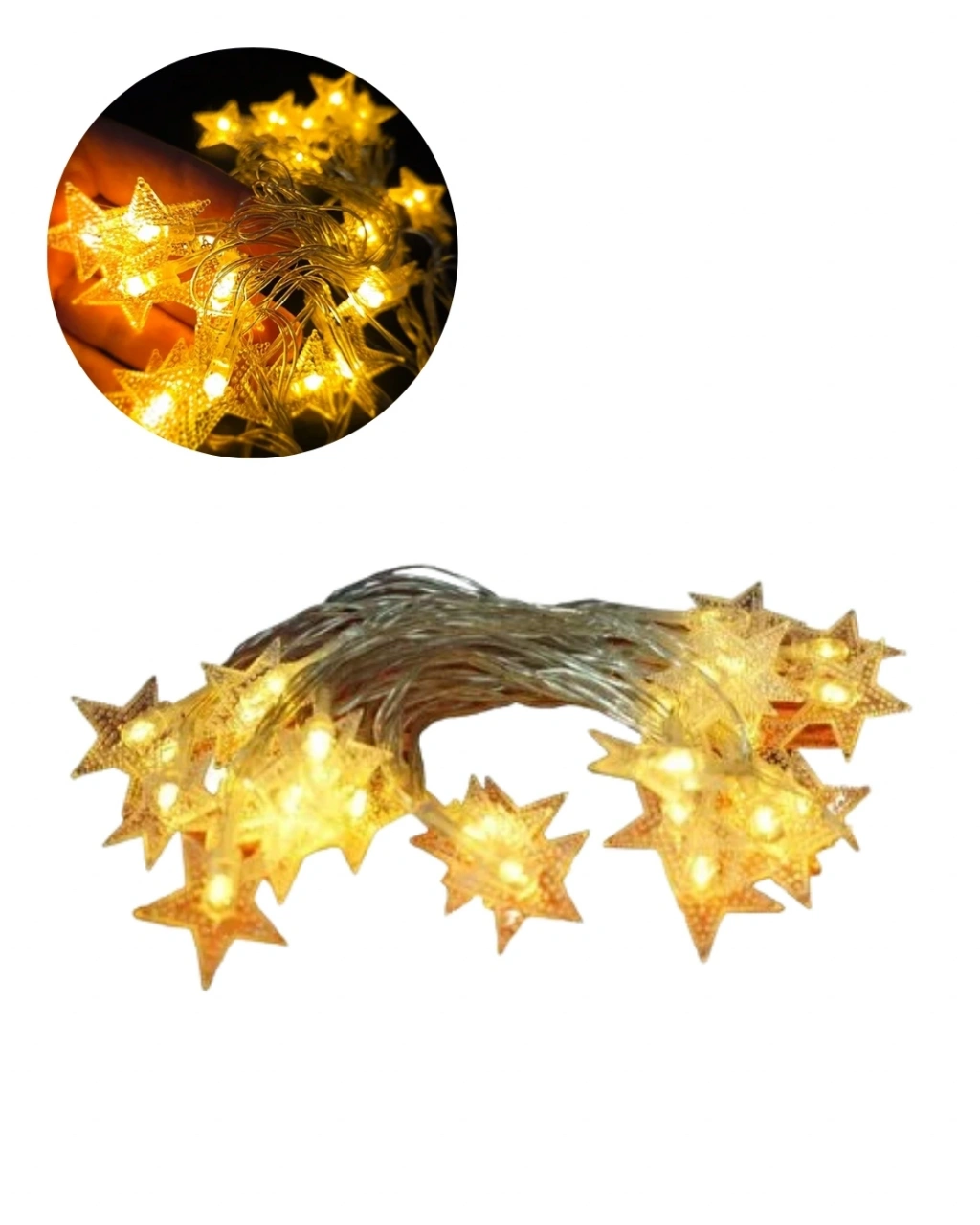 Günışığı Beyaz Yıldız Işık Zinciri 5 Metre Enerji Tasarruflu Dekor