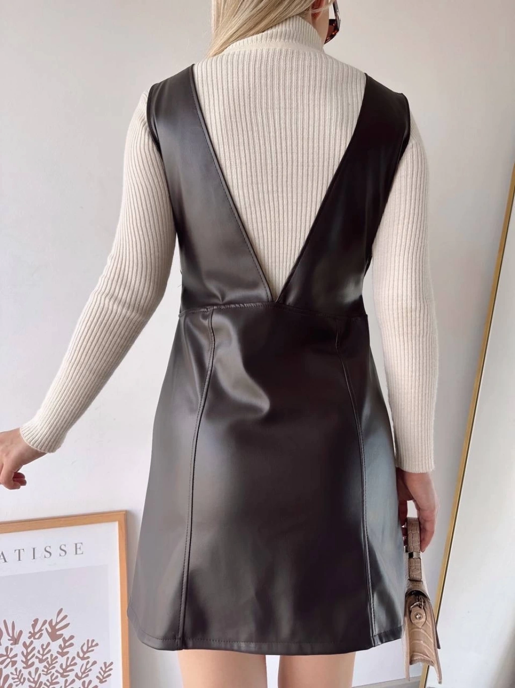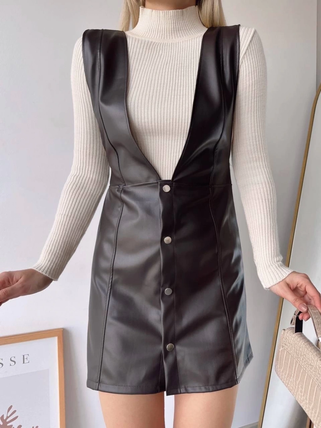 Askılı ch kumaş düğmeli elbise siyahbeyaz h265007