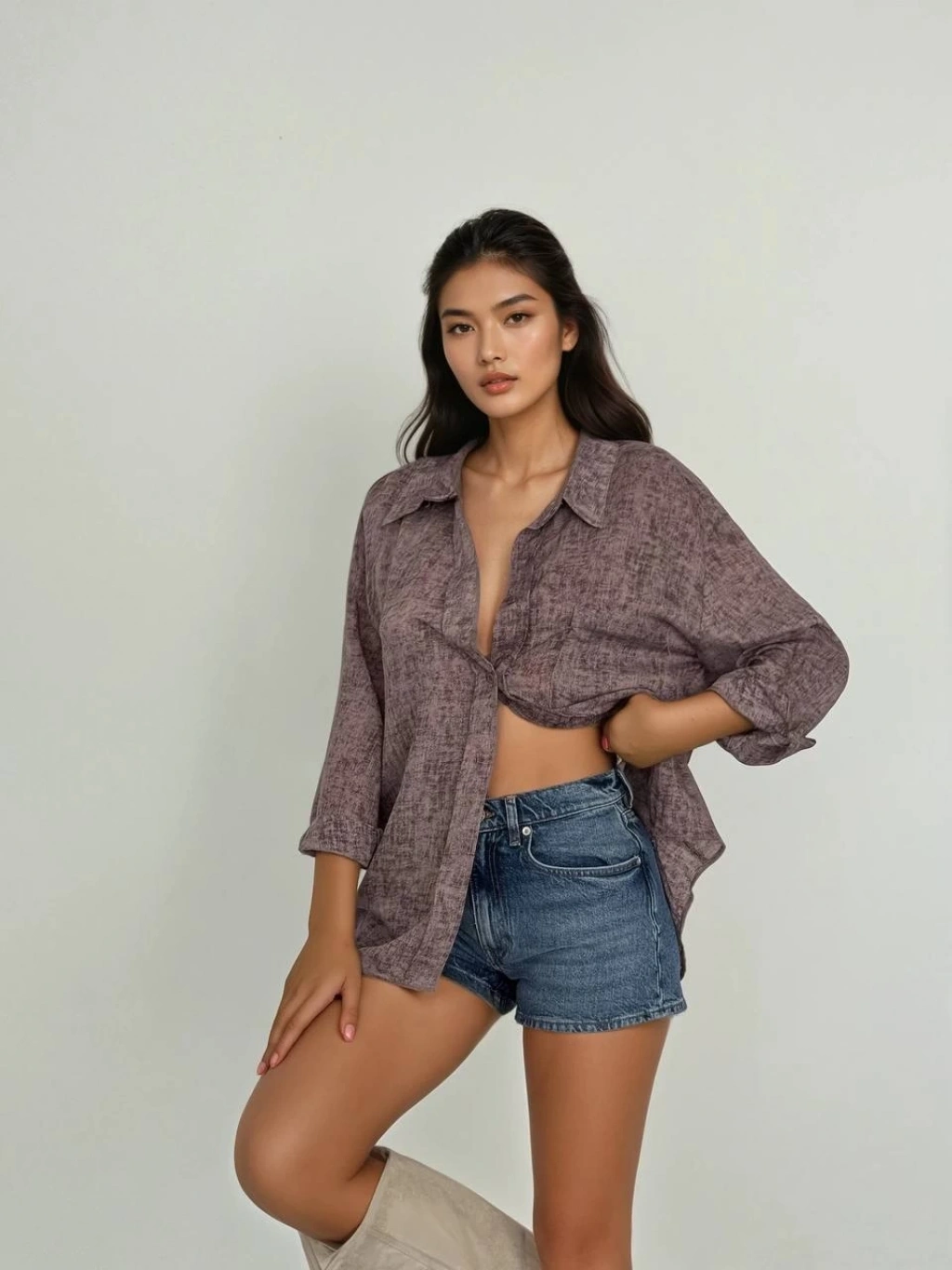 Kemer cepli keten crop gömlek krem s255350