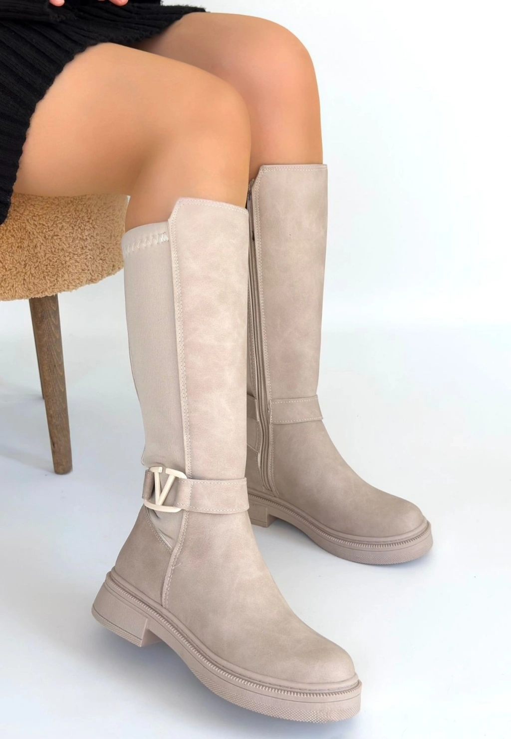 İwon Bej Süet Körüklü Çizme