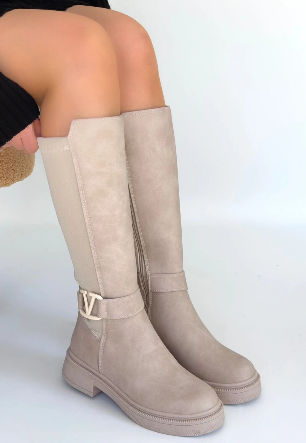 Tiyan Bej Cilt Topuklu Çizme