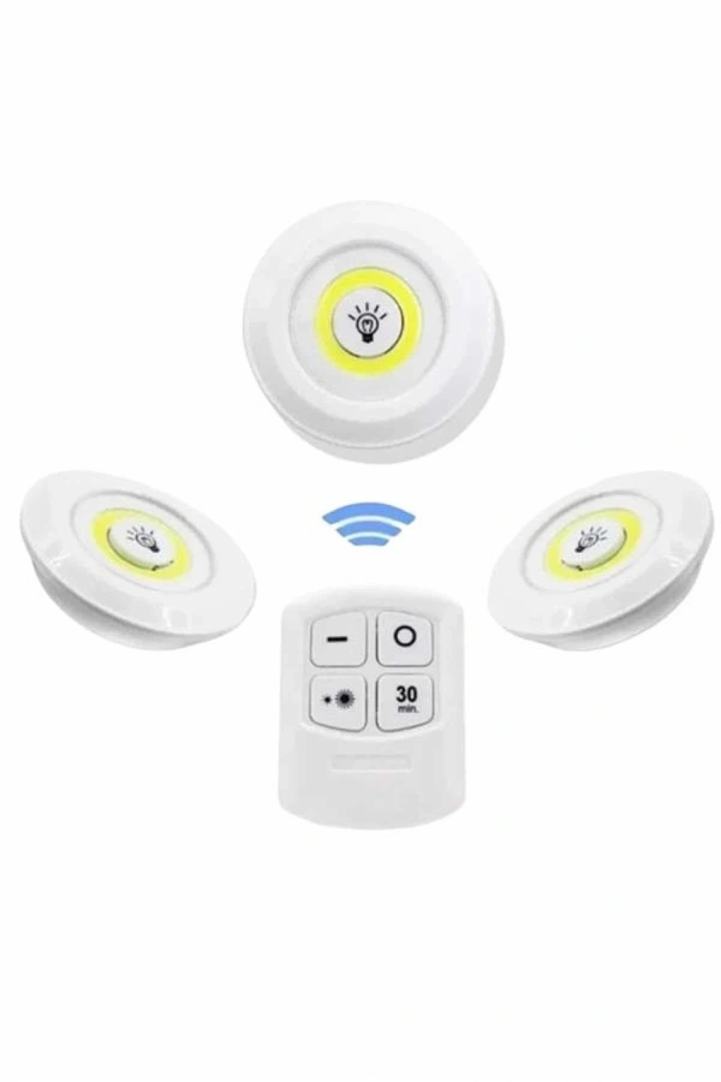 Dolap Işığı Mutfak Rafı Işığı Uzaktan Kumandalı 3 Lü Spot Led Lamba