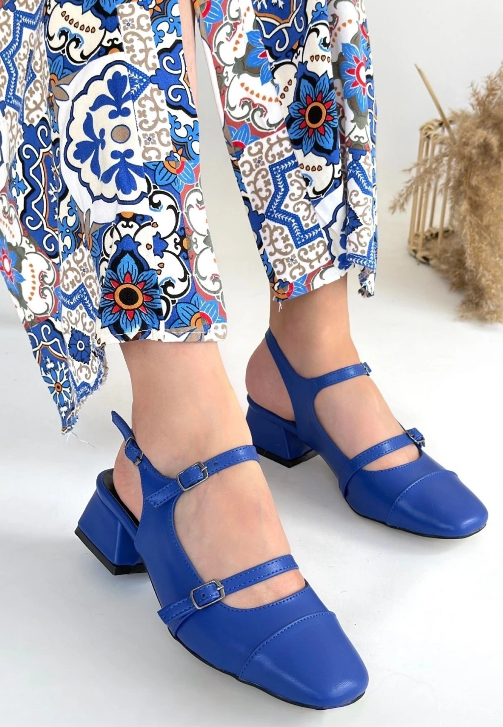 Doran Mavi Cilt Topuklu Ayakkabı