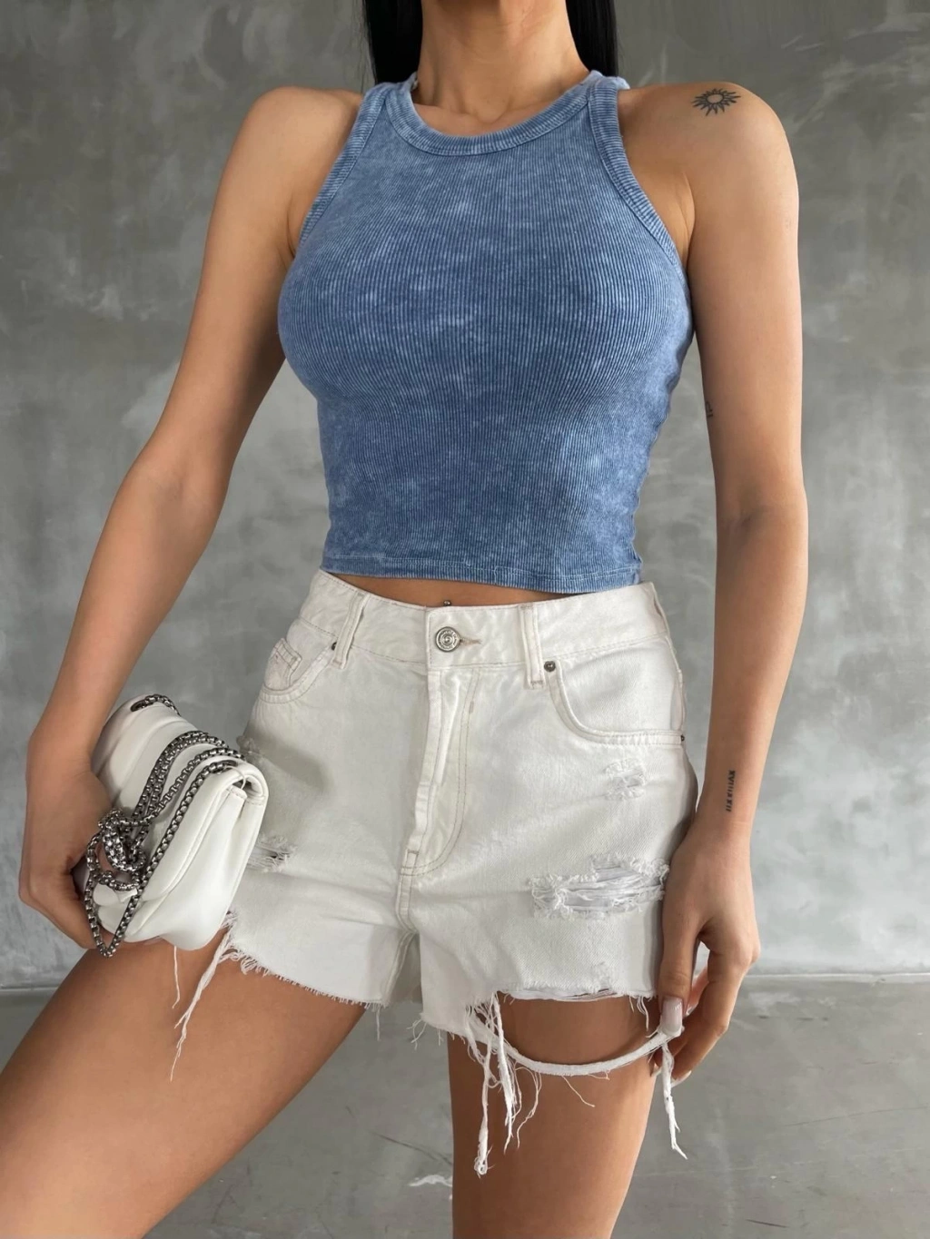 fitilli kaşkorse yakası zincirli atlet beyaz