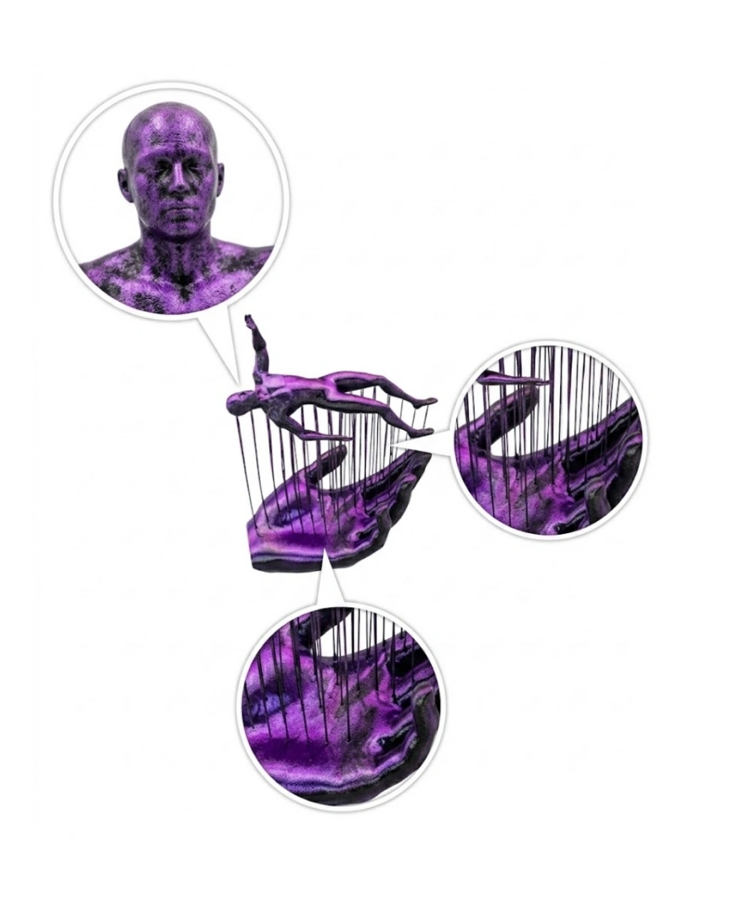 3D Mor İnsan Figürü Dekoratif Duvar ve Masa Üstü Sanat Objesi