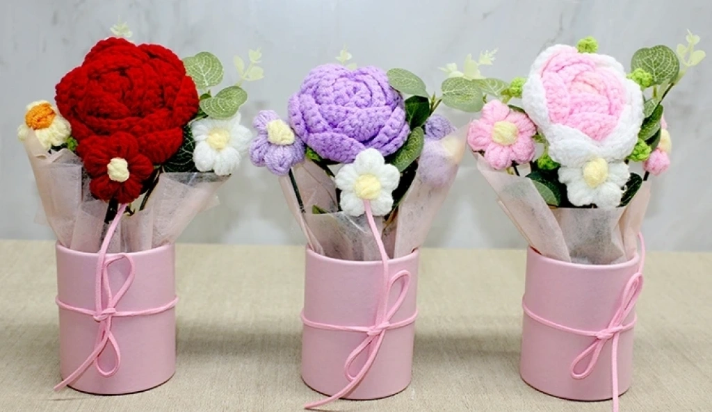 El Örgüsü Saksıda Gül Buketi