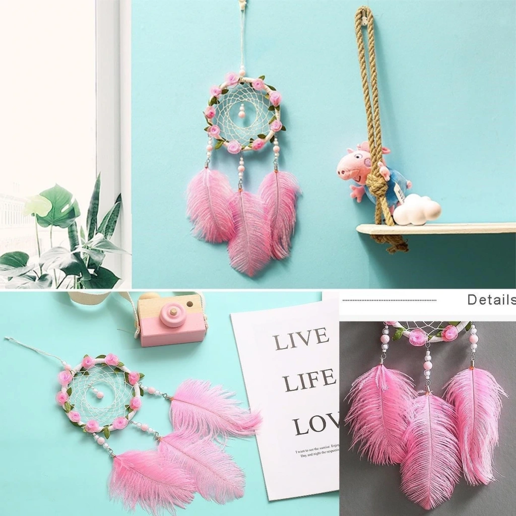 El Yapımı Kuş Tüyü ve Led Işıklı Dekoratif Asma Düş Rüya Kapanı (5047)
